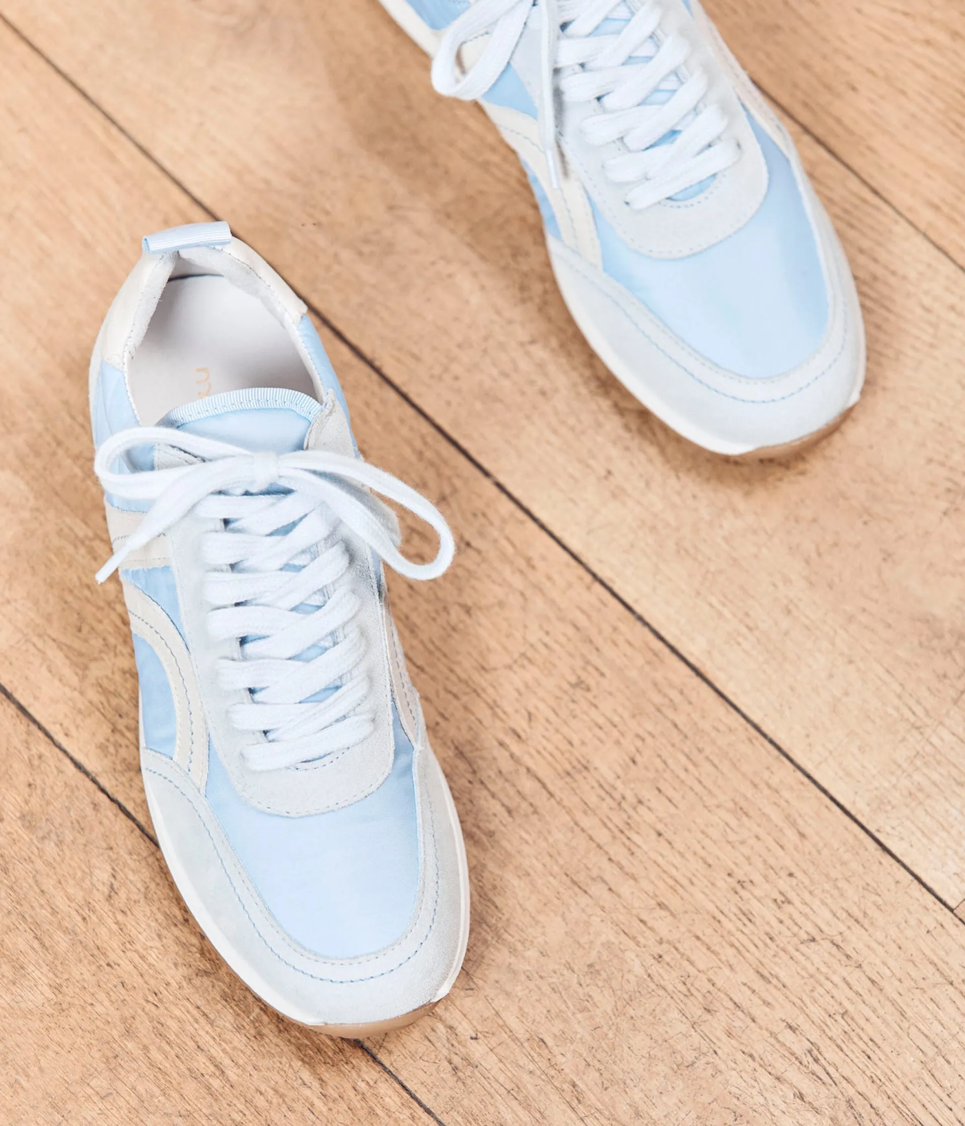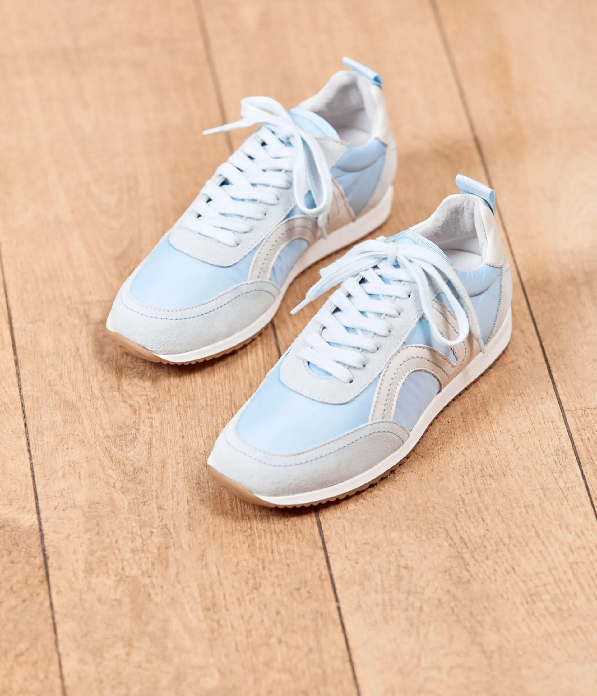 Enfilez donc votre paire de sneakers en nylon Oliver. Good news, elles ont comme un « Twist » : une couleur ciel sans nuage, pile comme votre moral une fois à vos pieds. Lacées, emballées, c’est pesé.