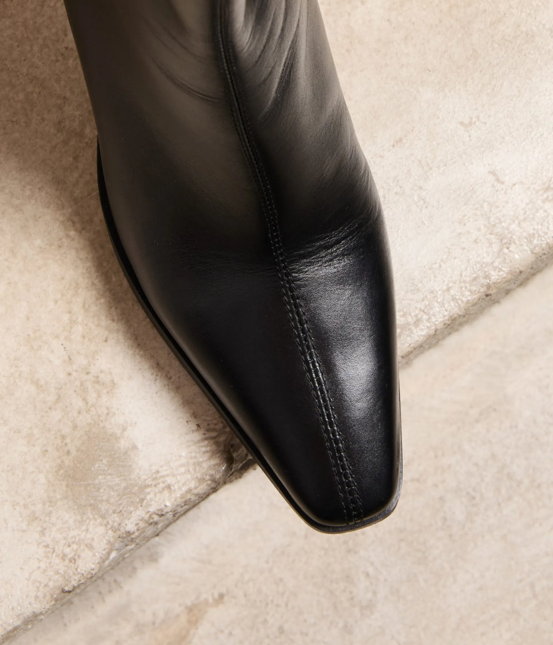 Sanaki ? Ce sont les bottines à talon les plus prometteuses de la saison. Leur bout pointu-carré et leur talon design s’associent très bien à la tige montante fermée par un zip. Déclinées en cuir noir, elles ont tout (absolument tout) pour passer à la postérité.