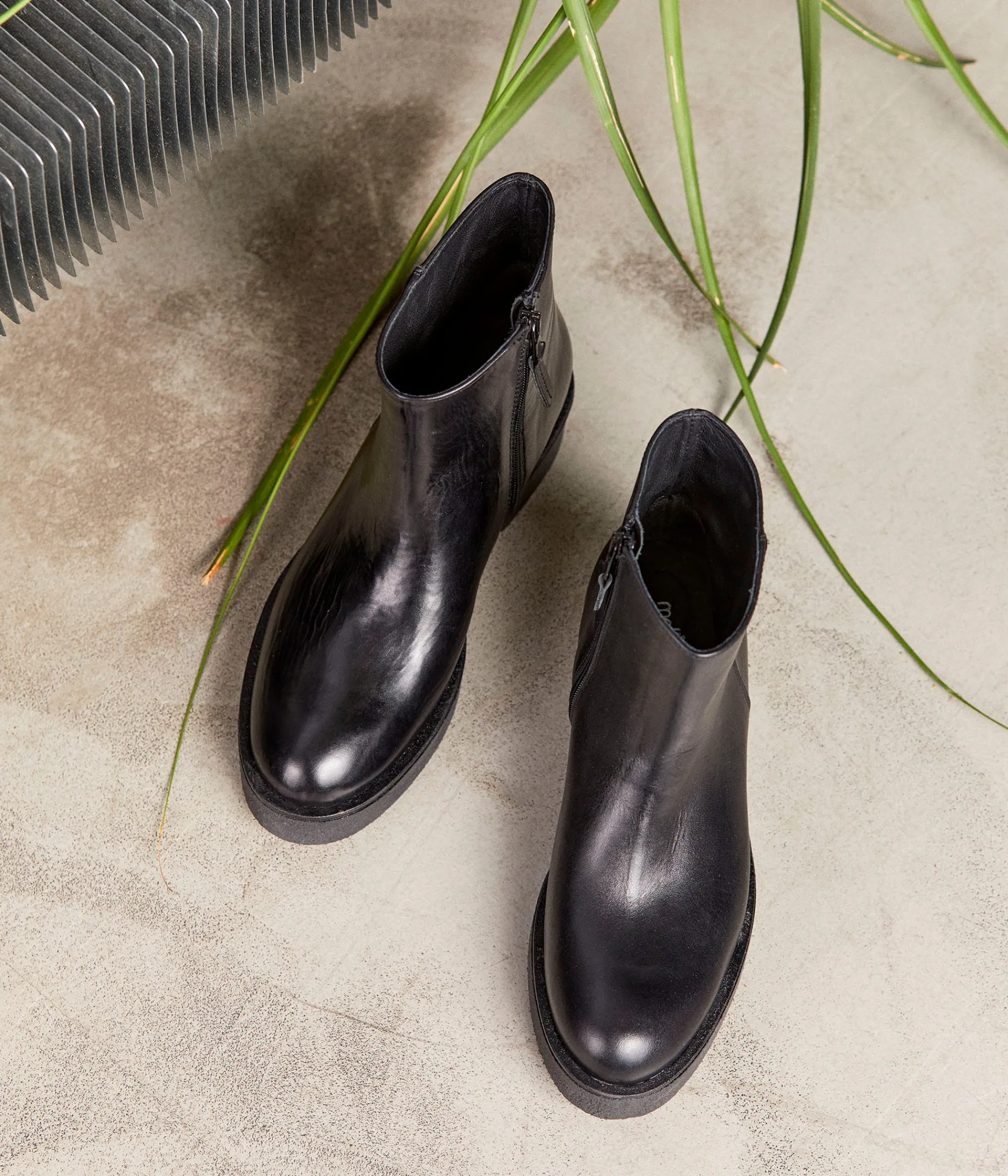 Je n’ai besoin de personne en Harley Davidson… disait la chanson. Look biker affirmé pour les boots Isaure en cuir lisse noir et semelle crêpe ton sur ton, avec ou sans bécane.