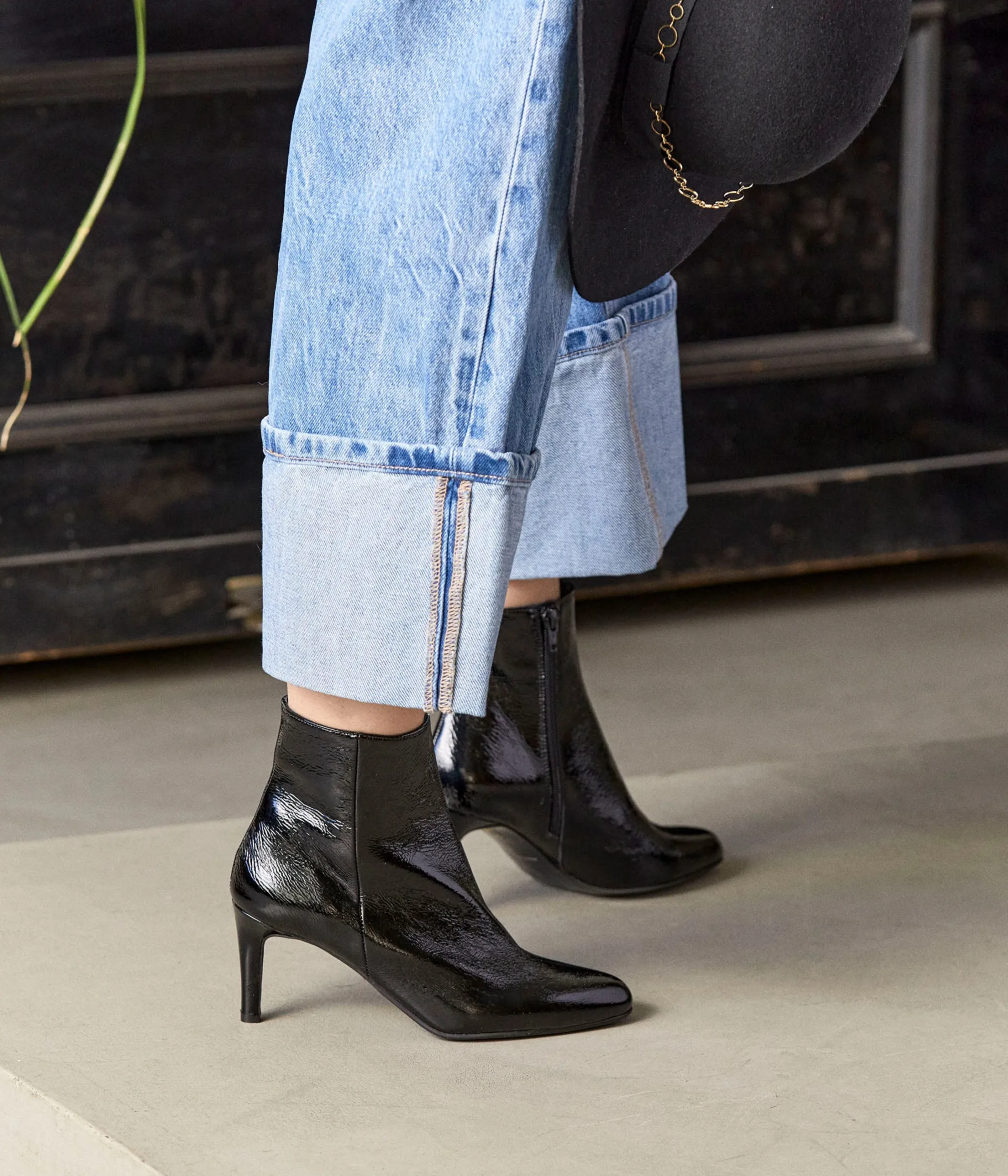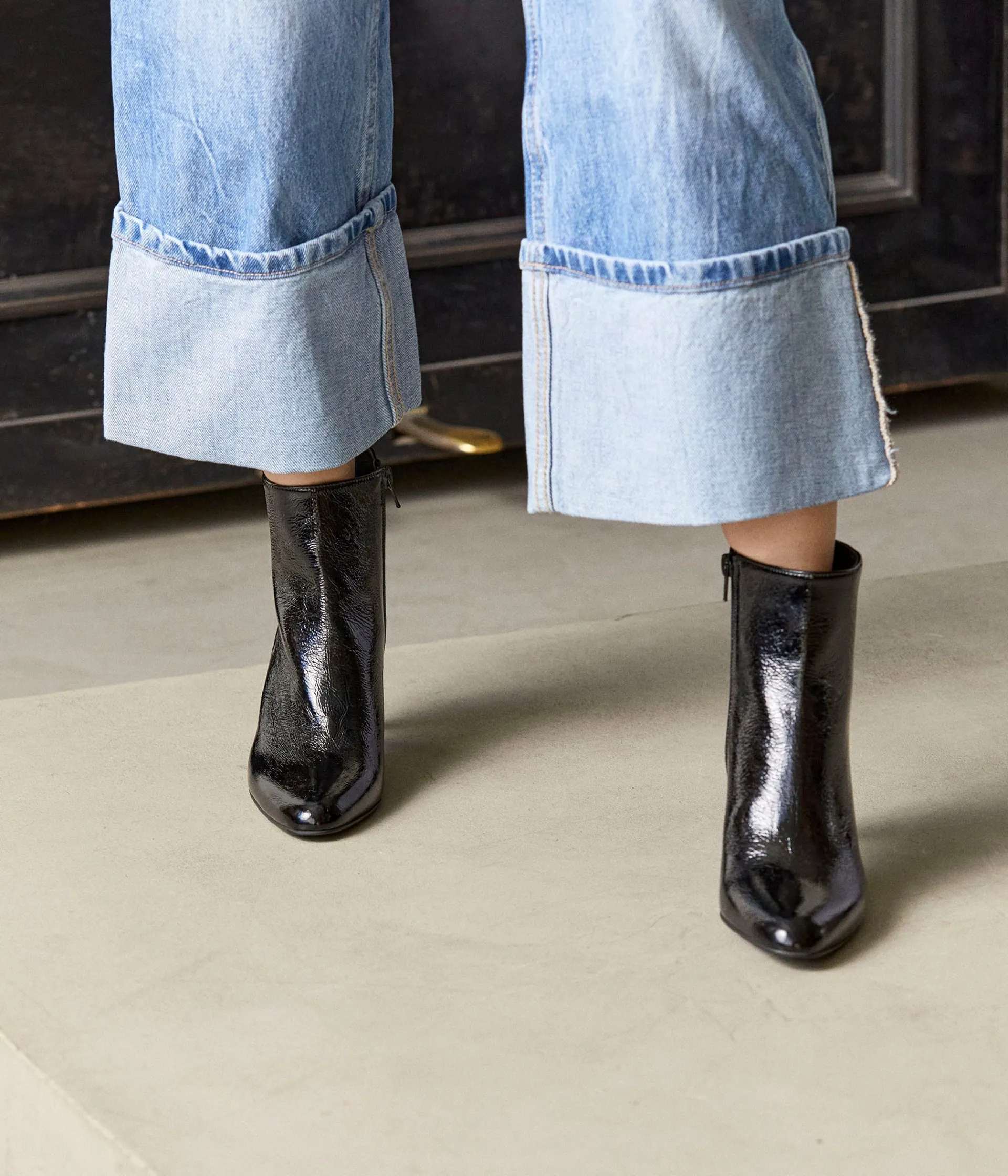 In Poeme we trust ! Ça sonne comme un engagement politique voire féministe. Ça résonne surtout comme une nouvelle passion. Singularité, finesse, chic, ces boots en cuir verni noir, un brin rétro il faut l’avouer, n’ont pas fini de vous faire marcher voire courir.