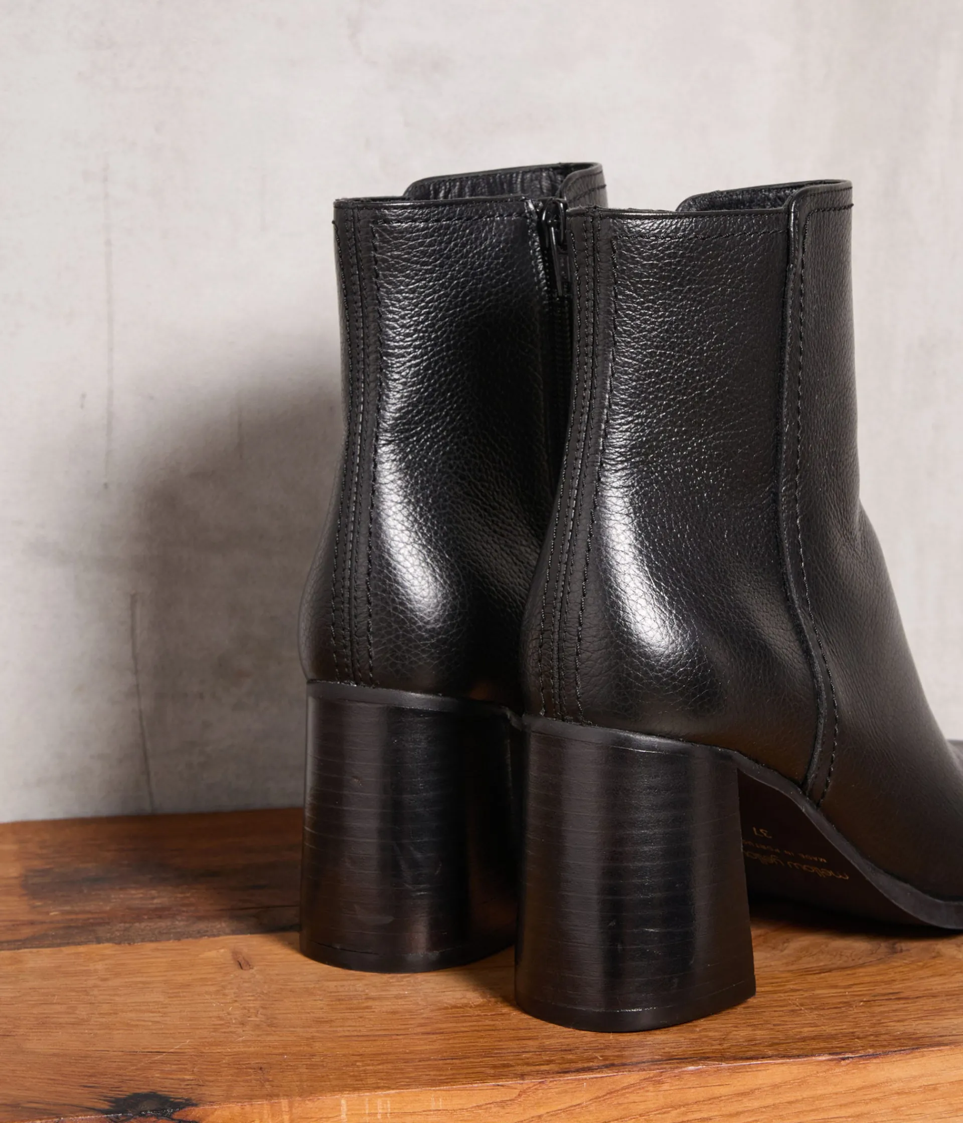 Vous n’avez pas encore de boots pour cet hiver ? On vous conseille Ben. Un modèle en cuir noir et sur talon flare de 7…
