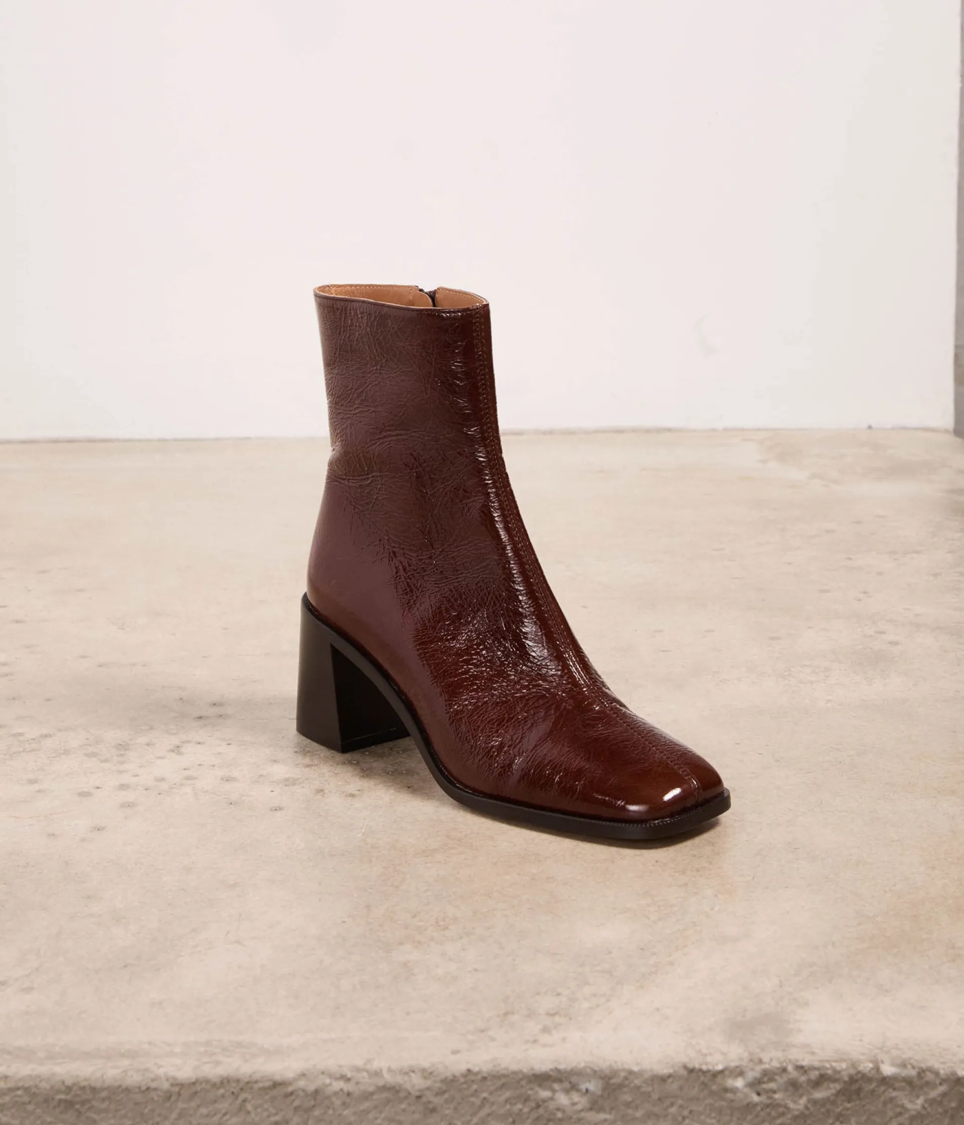 Viva Hulsa ! Époustouflantes par ce coloris marron, it-color de la saison. Irrésistibles par cette finition vernie. Remarquables par ce talon flare parfait de 7 cm. En matière de mode, de shoes, de style, on frise là, la perfection, la vraie. Convaincue ?