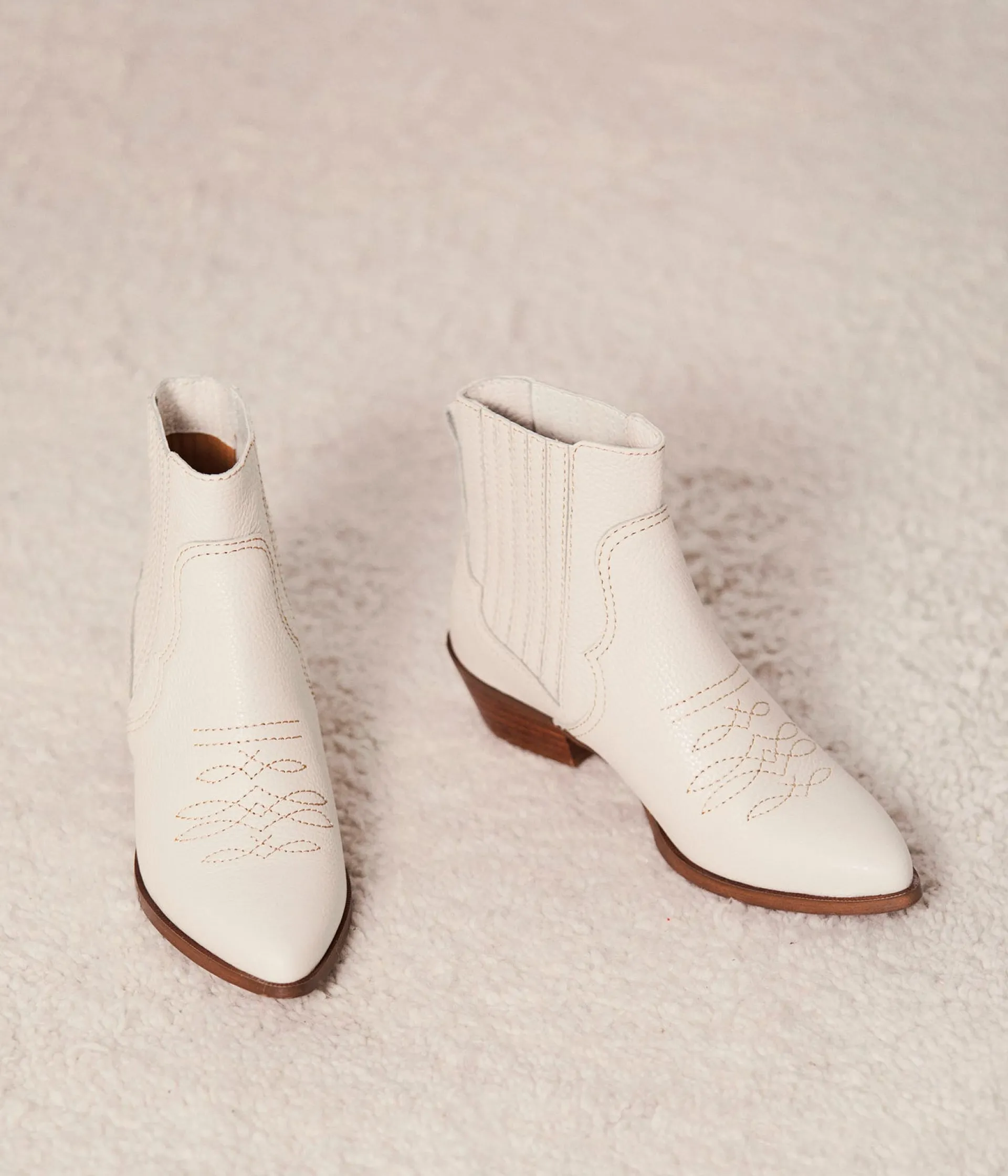 Parez vos tenues, même les plus minimalistes, d’un côté vieille canaille grâce à notre paire de bottines Willa. Ton beige à surpiqure, petit talon pour faire claquer le sol du troquet, on évite juste le total look avec le bandana et le marcel, merci.