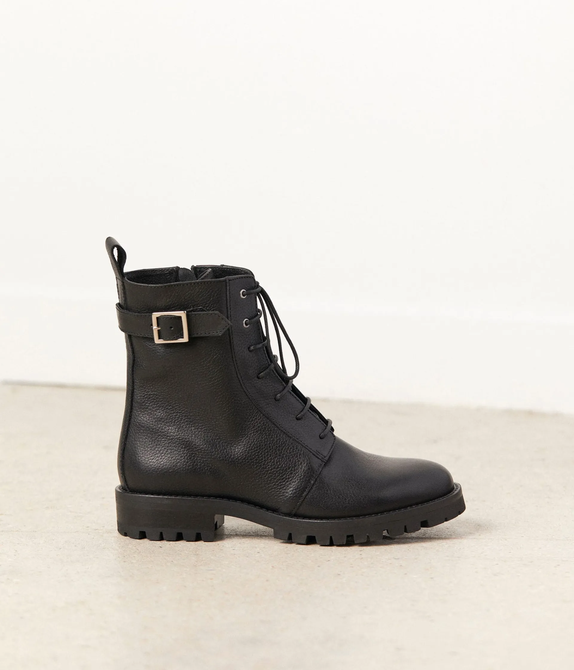 Bottines Noémie au rapport ! Tige montante et cuir grainé, elles défendent un style militaire, validé par l’Etat-Ma…