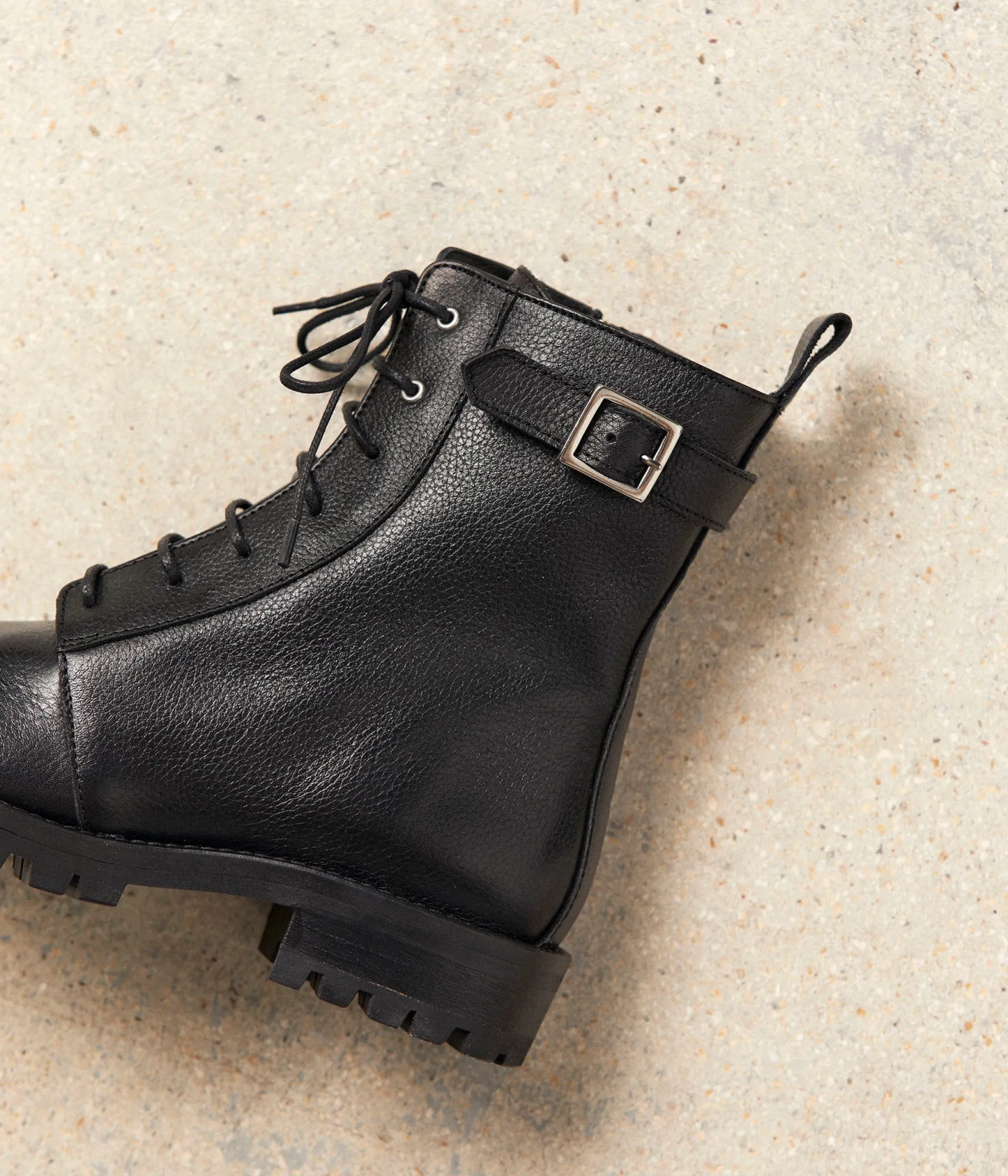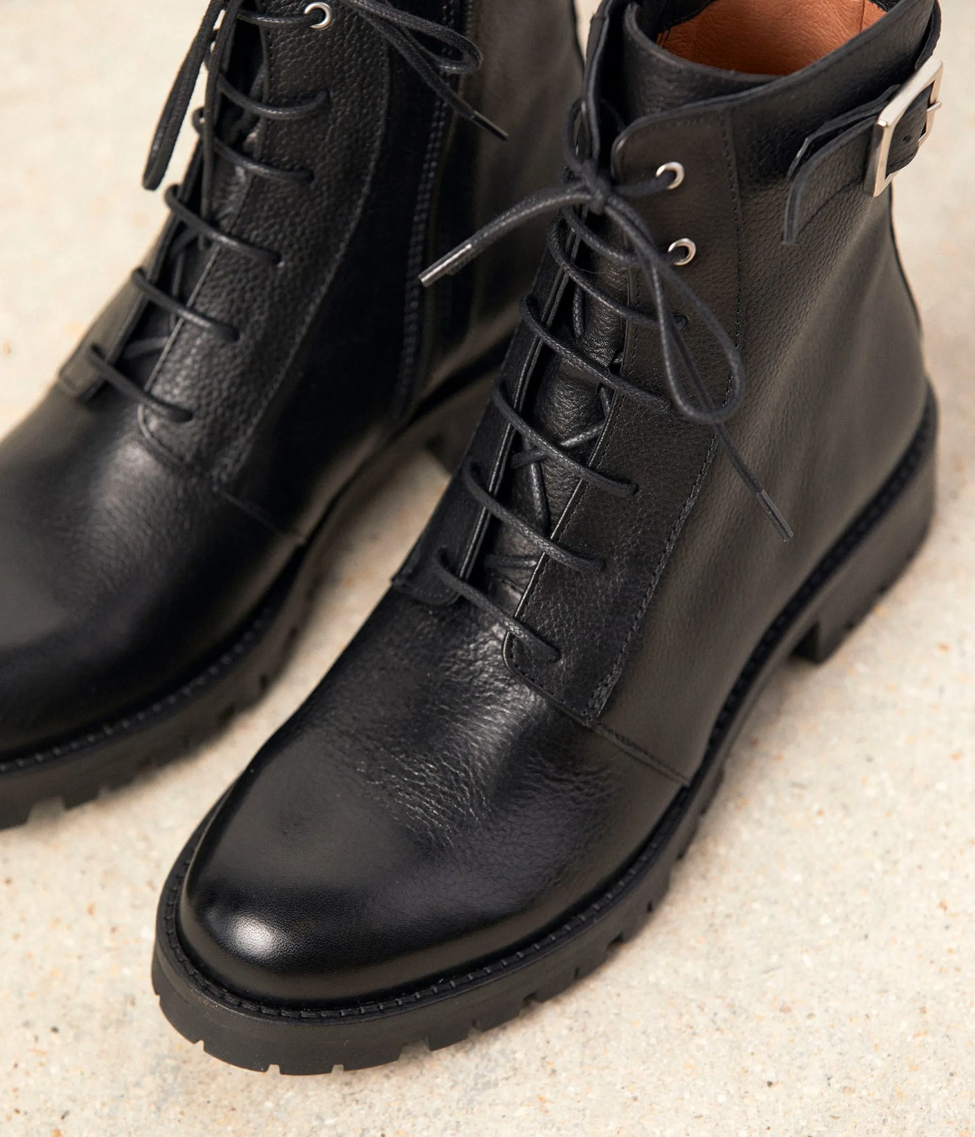 Bottines Noémie au rapport ! Tige montante et cuir grainé, elles défendent un style militaire, validé par l’Etat-Major des tendances 😉 L’important étant, avant-tout, d’être bien dans ses baskets. Ou plutôt dans ses rangers du coup.