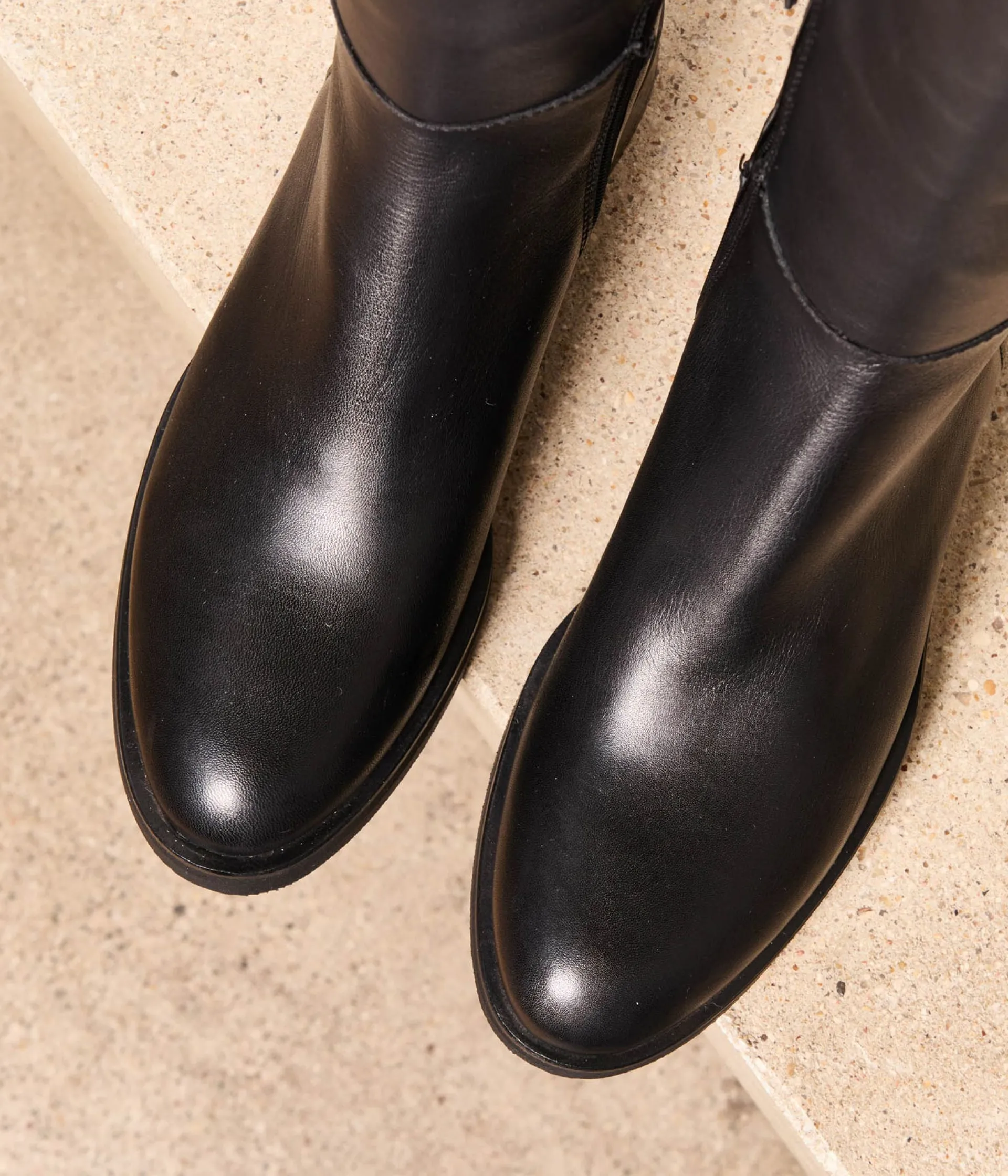 Impossible de botter en touche avec Francesca ! Cuir lisse, coloris noir, talon plat décroché, elles reprennent avec brio l’esprit de la botte cavalière, sans avoir besoin… d’une vraie monture. Icônes de nos placards à chaussures, aussi audacieuses qu’intemporelles, elles n’en finiront donc jamais d’envahir nos automnes.