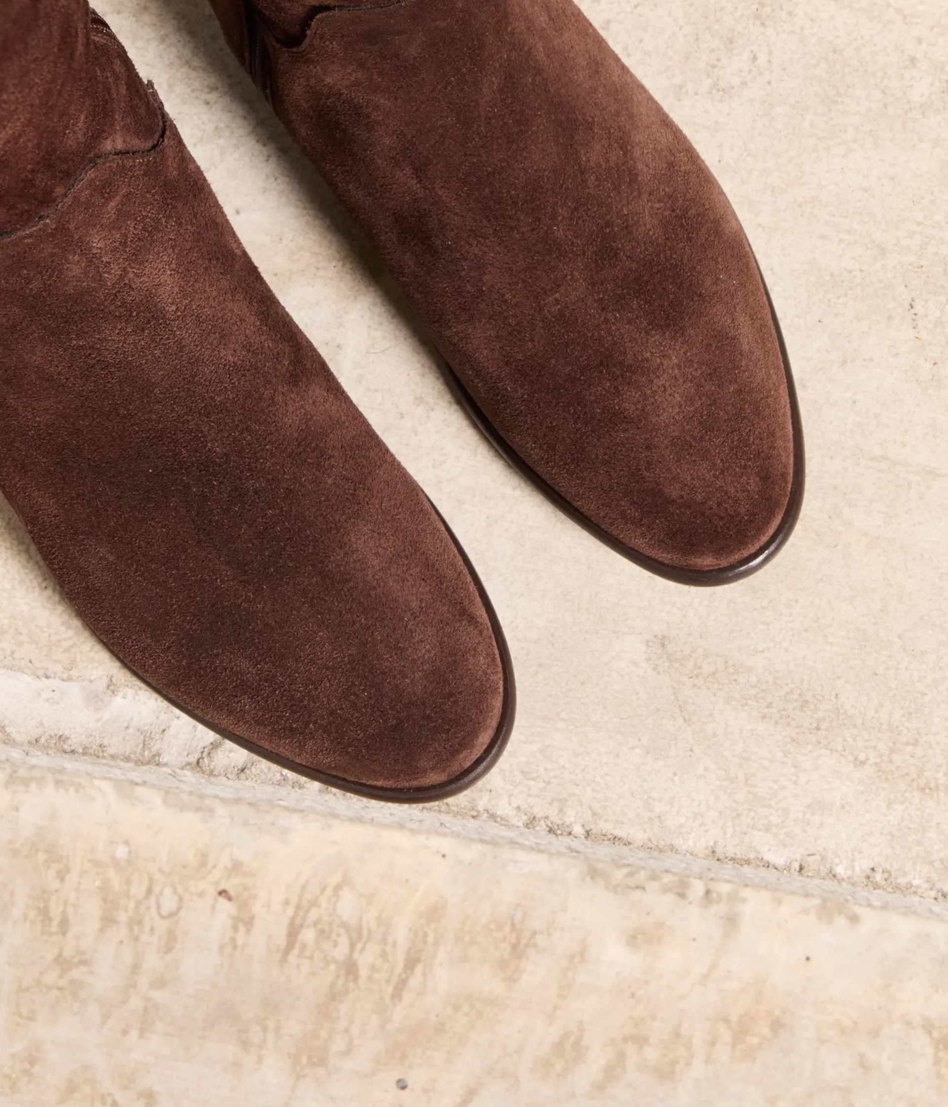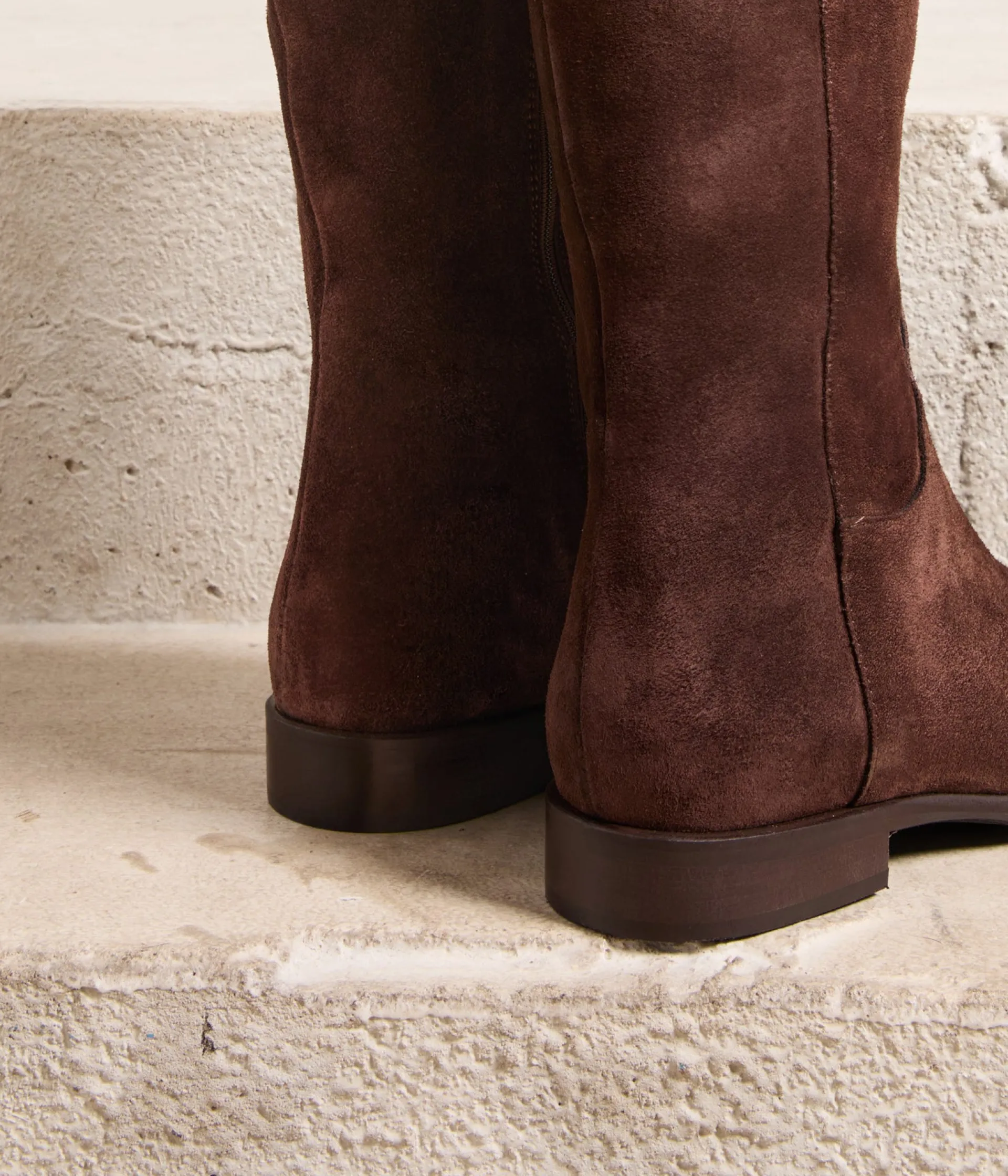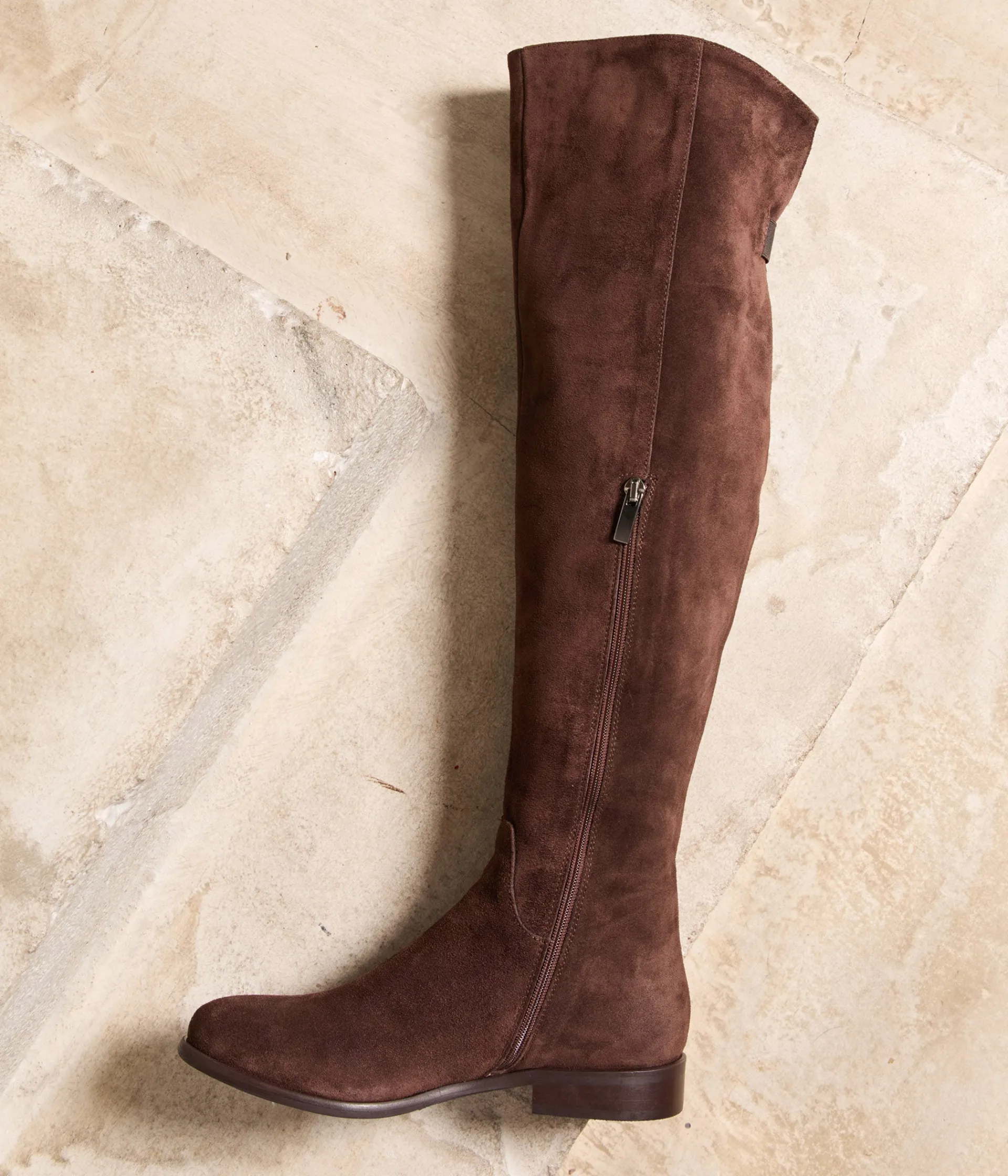 Les cuissardes seraient-elles en passe de devenir le nouveau pantalon ? C’est en tout cas le point de vue des fashionistas, qui ne sortent plus sans ces hautes bottes, avantageant les silhouettes longilignes. A essayer en cuir velours marron. Demandez Lauren.