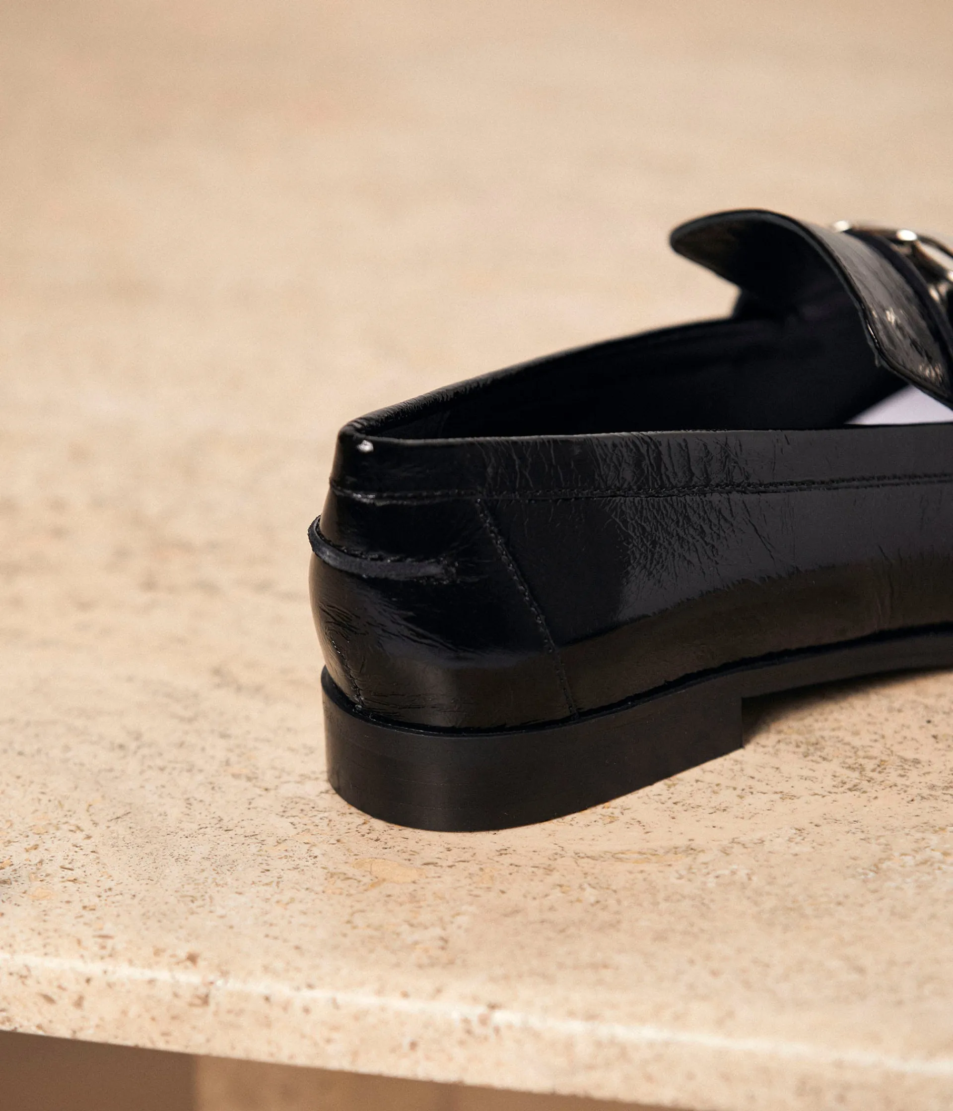 ?Confort ? Présent ! Style ? Présent ! Assurez votre place de première de la classe, grâce aux mocassins Pauline. Cuir verni noir et décor maxi chaîne, ils sont au cœur des looks preppy et désormais en tête de votre wishlist.