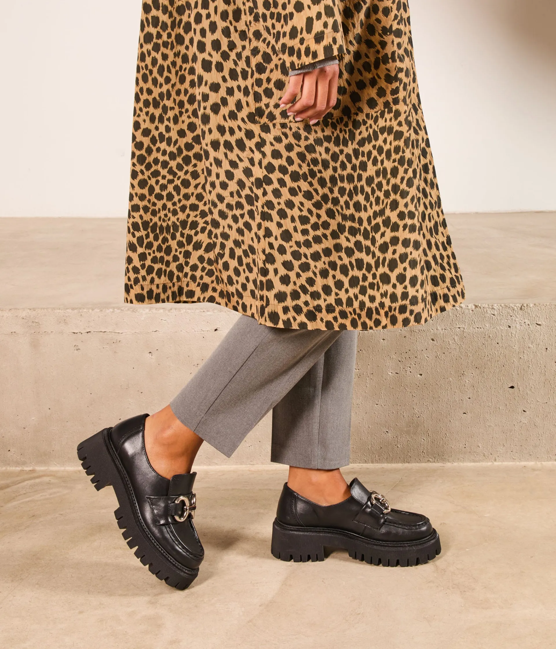 Marcos, c’est l’obscur objet du désir qui nous attire irrésistiblement… Comment résister ? On vous répond : pourquoi résister surtout ? Ces mocassins en cuir noir, montés sur des semelles à plateforme et crantées, sont résolument rock avec un blouson en cuir, assurément preppy avec des chaussettes courtes blanches.