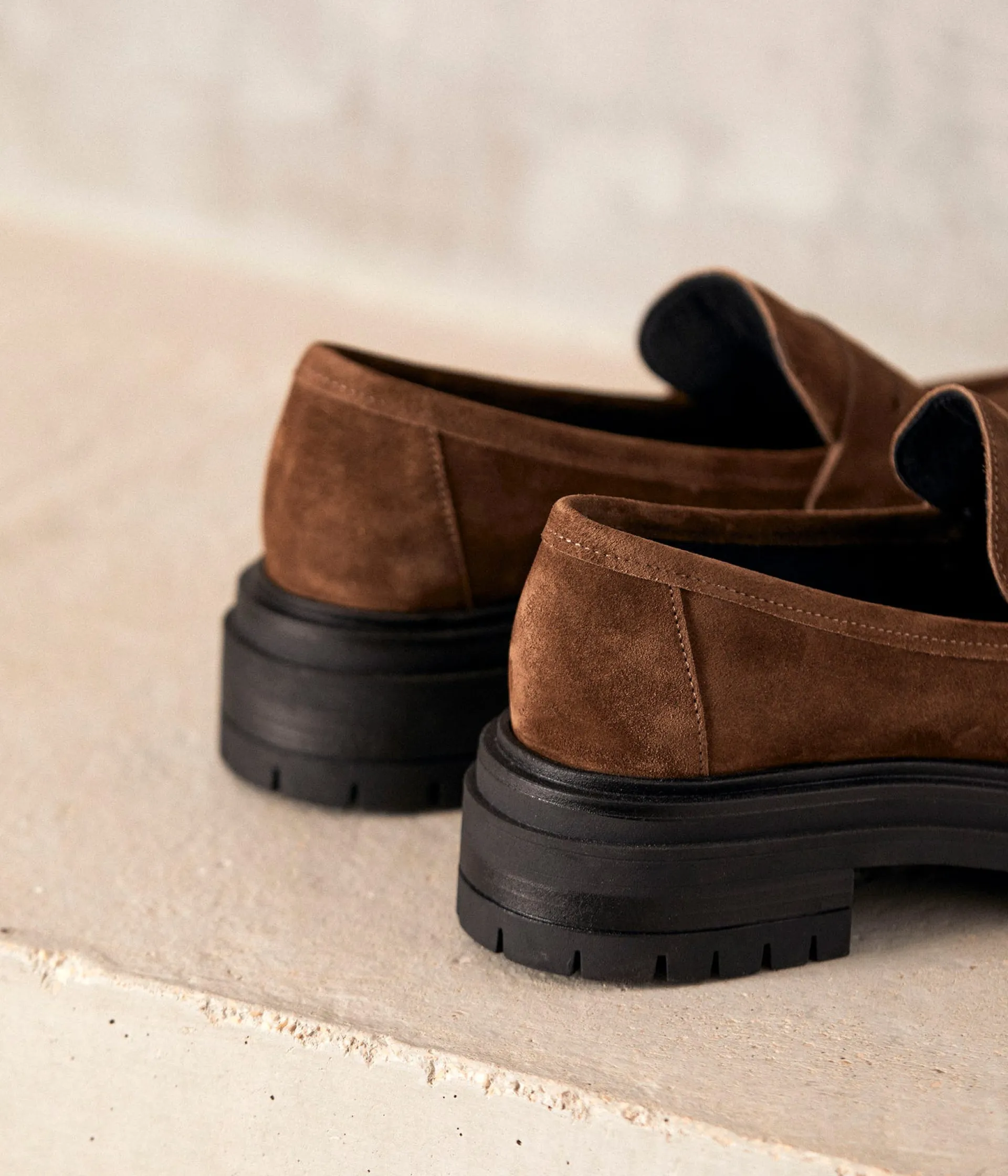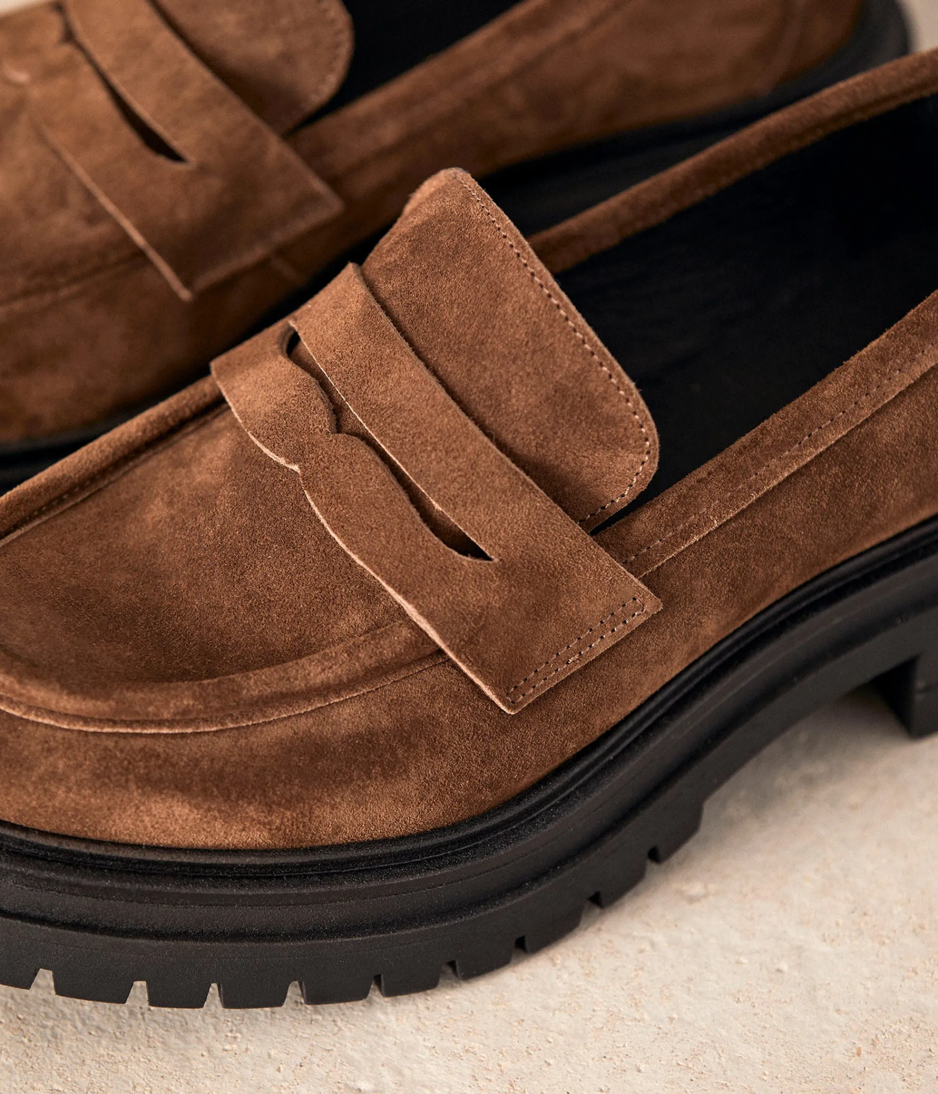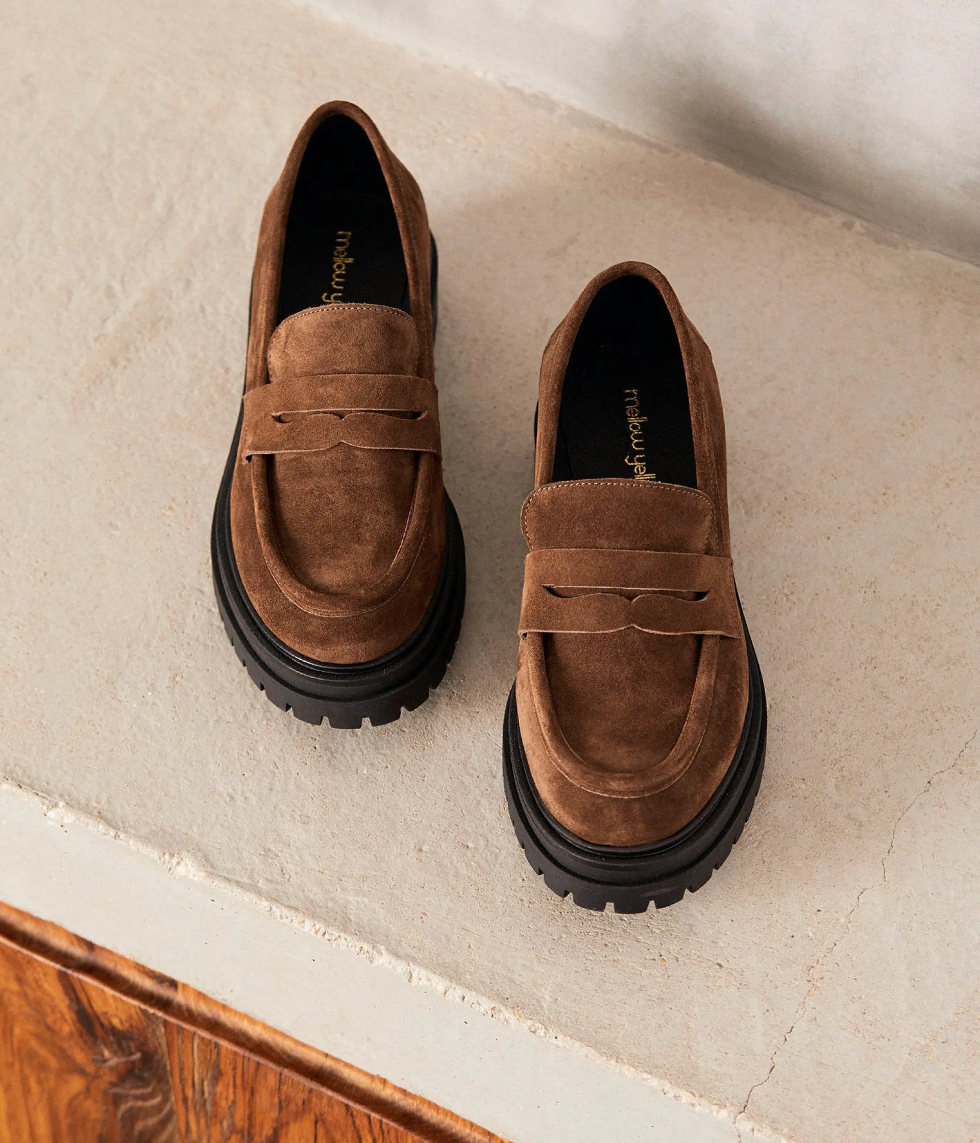 On applaudit, à deux mains, le retour de qui ? Du mocassin ! On valide, à deux pieds, leur confort, dû à quoi ? A une semelle crantée. Le cuir velours taupe est définitivement un remède puissant au blues de la rentrée, aux journées sans soleil, à l’automne (rien que ça !).
