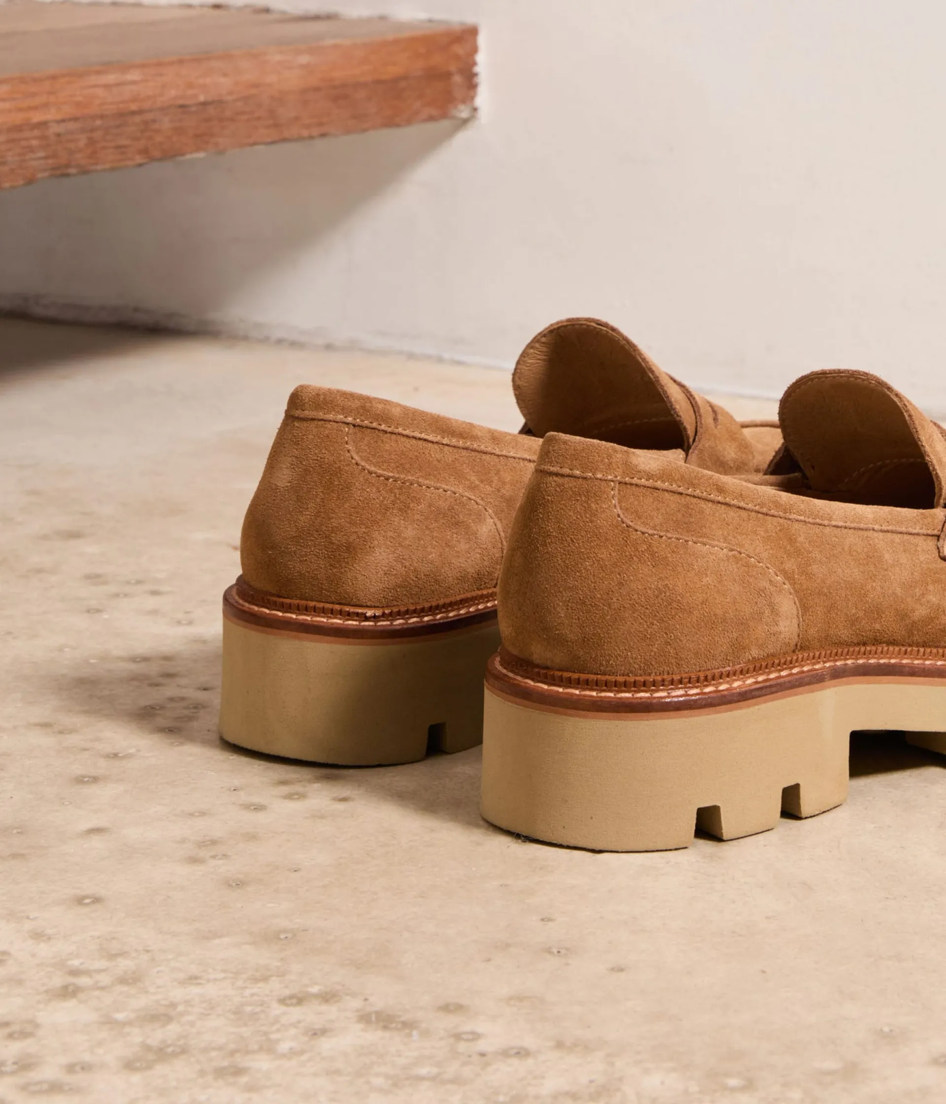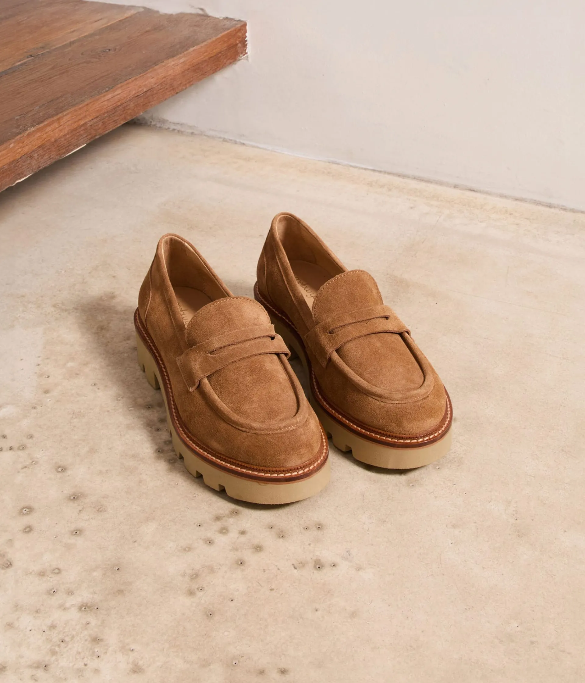 Lauren Bacall ou Lauren Hutton les auraient sans doute adorés. Qui ça ? Nos mocassins Joy, en cuir velours beige. Avec un pantalon chino ou un pantalon à pinces, avec un jean taille haute qui s’arrête à la cheville : assumez (enfin !) votre style masculin/féminin.