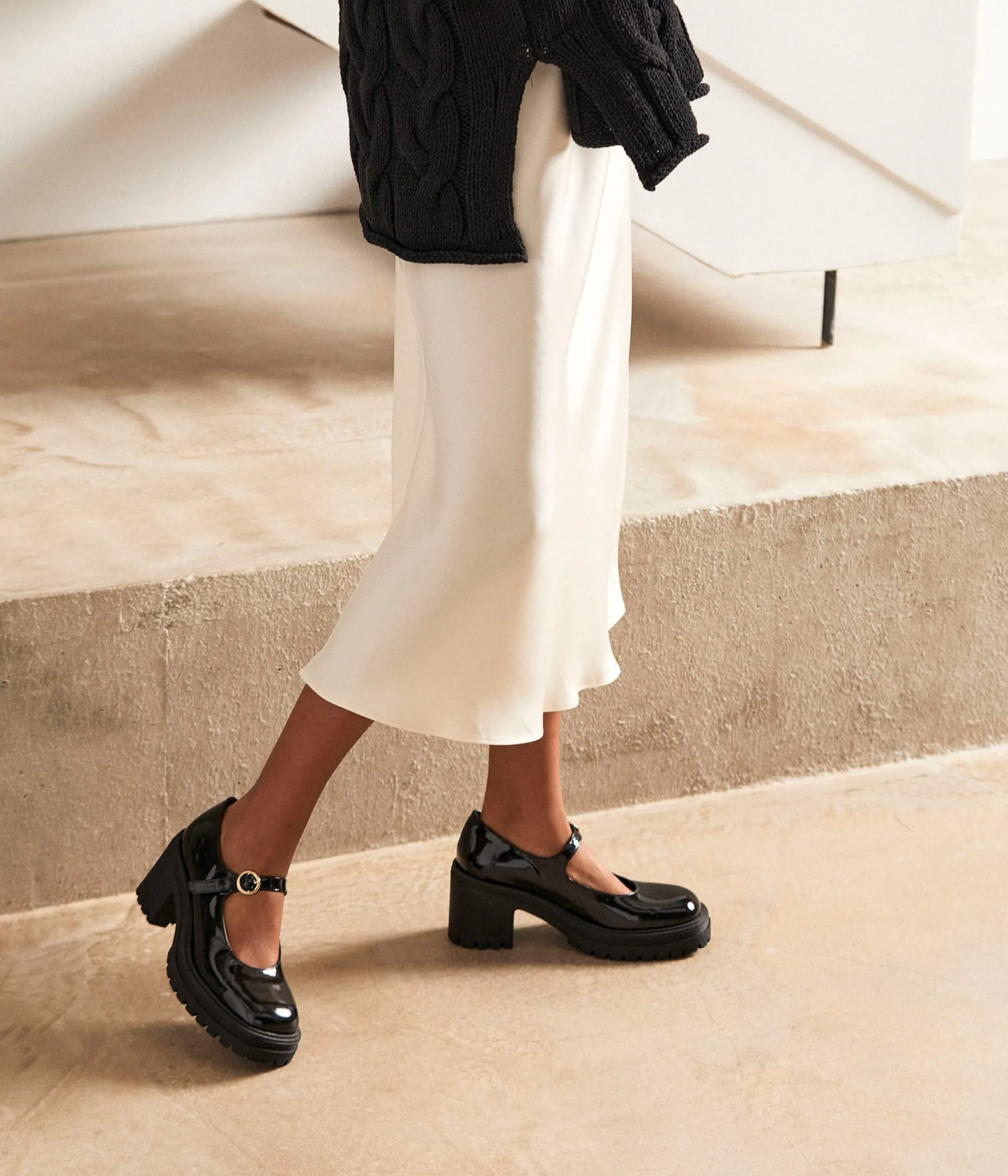 Charité bien ordonnée, commence par soi-même. Et par se détendre des orteils au sommet du crâne, des paumes de mains au creux des reins. Essayez Anae, des babies vernies noires, montées sur semelle épaisse et crantée. Du génie, à partager !
