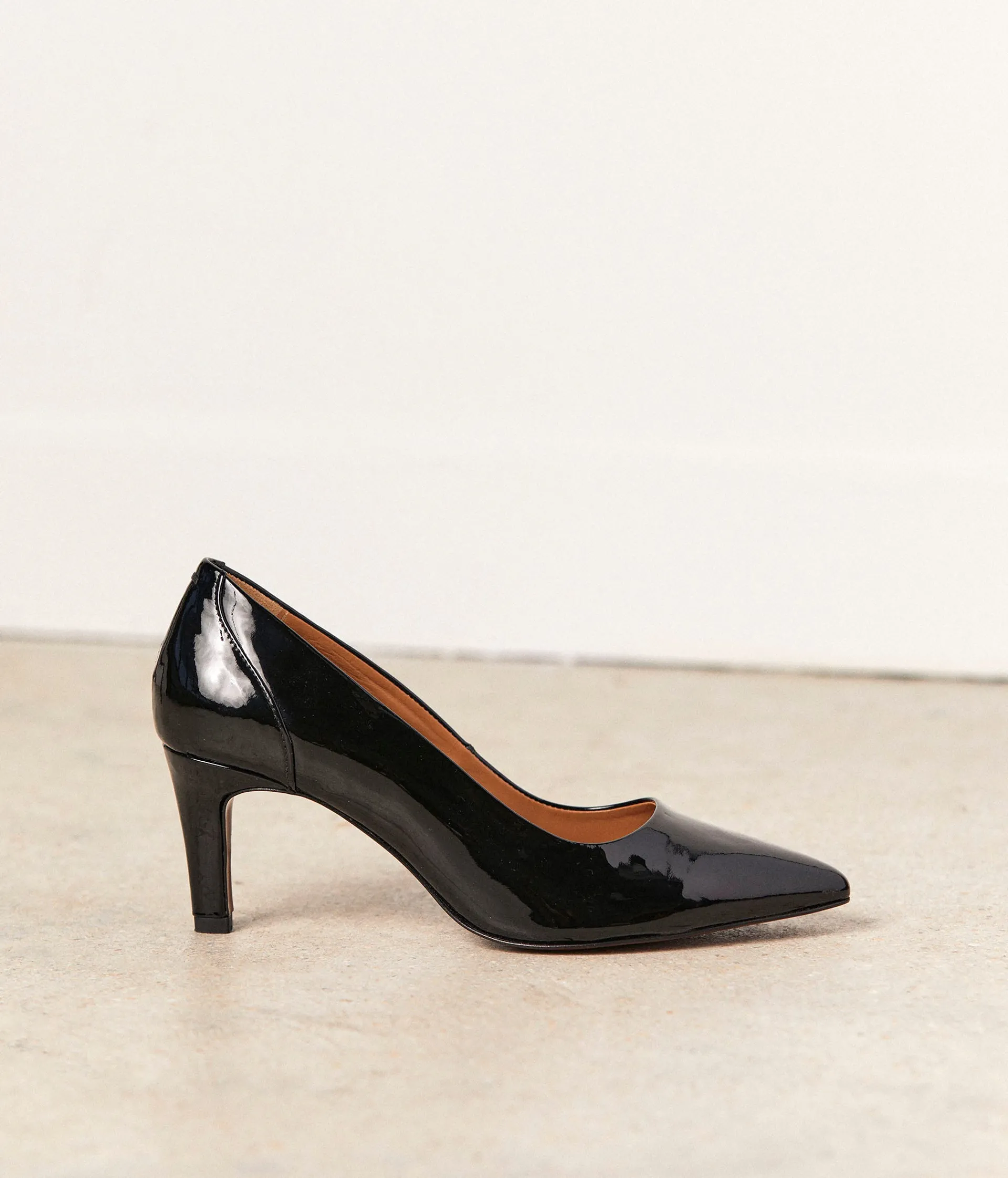 Les 7 merveilles du monde. Le jeu des 7 familles. Les 7 péchés capitaux. Et les 7 cm des escarpins Judia. En cuir verni noir, avec bouts pointus, ils offrent, à la silhouette, un sex appeal assumé et voulu.