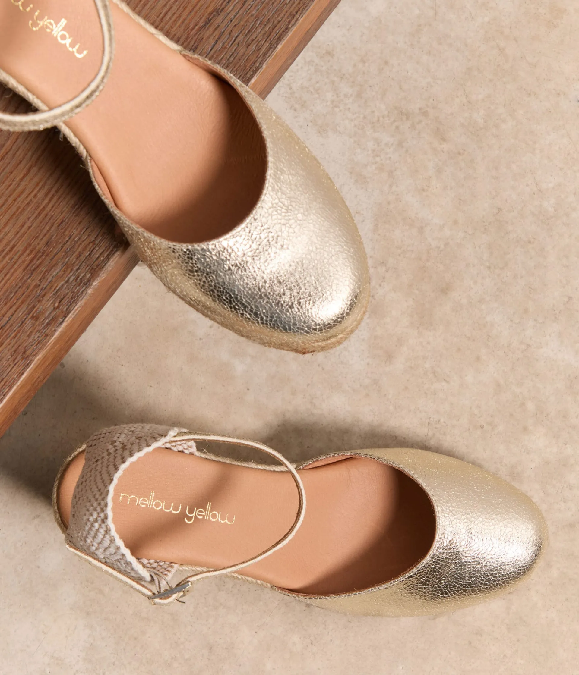 Il parait qu’il fait toujours beau au-dessus des nuages… En attendant de pouvoir le vérifier (note à nous-même : booker les prochaines vacances au soleil fissa), gagnez quelques centimètres avec nos espadrilles compensées Estrella, sublimes dans leur version cuir doré.