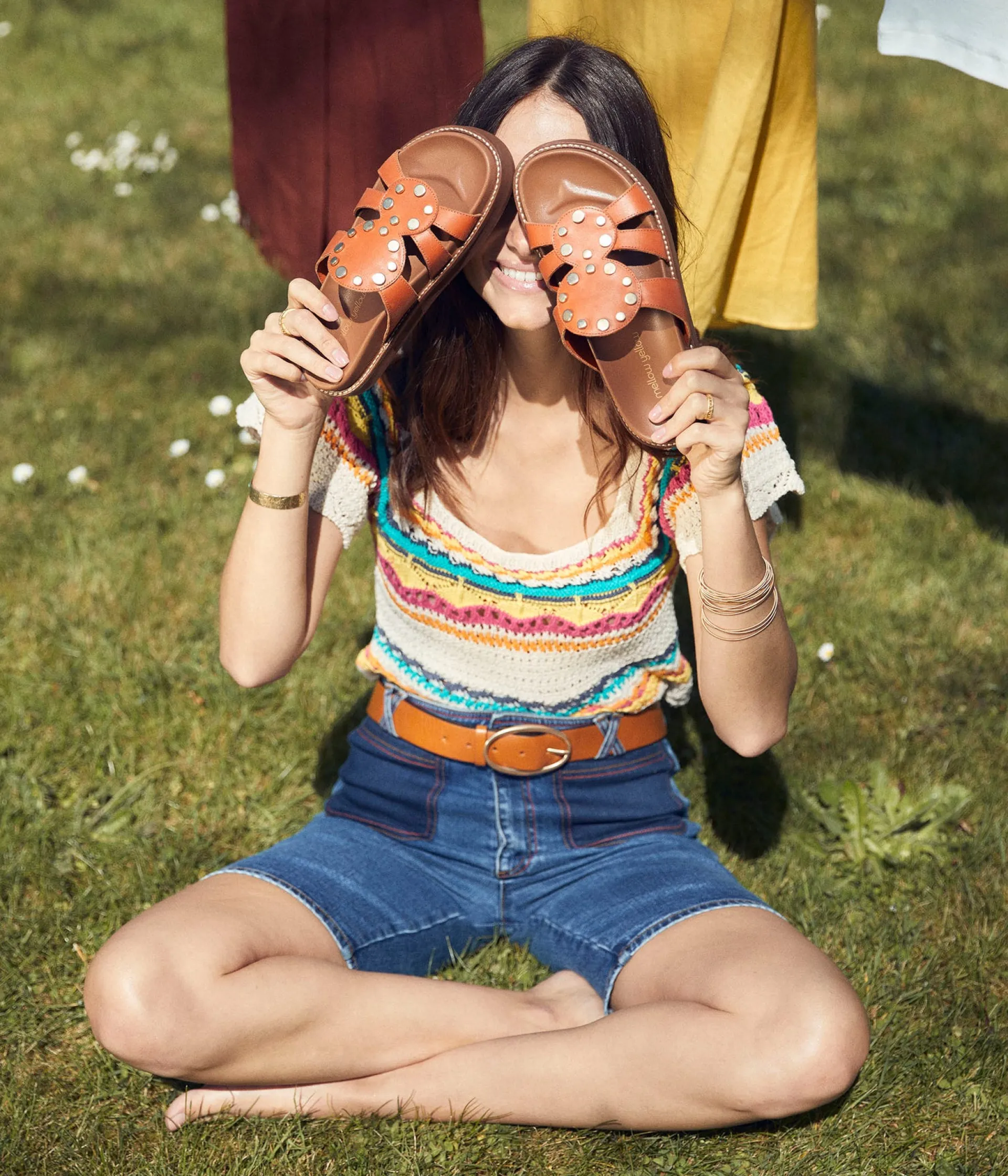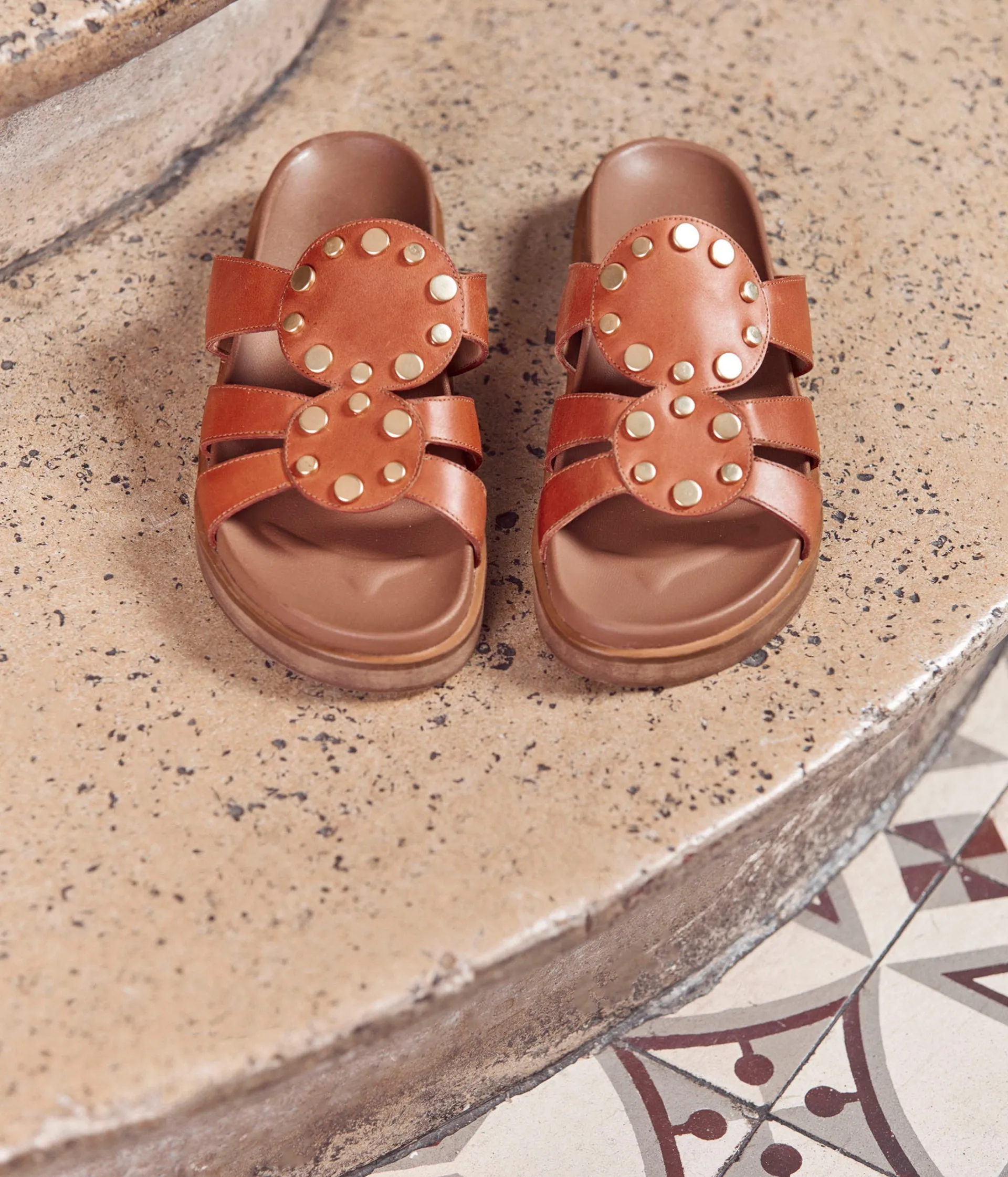 Envie d’une vie de bohème ? De longues robes vaporeuses ? De couchers de soleil ? De séances de yoga ? De fins de journées qui ne finissent pas ? Sorry, on ne peut pas vous payer une retraite spirituelle à Pantellaria. En revanche on peut vous chausser pour y aller. Avec nos mules plates marrons cloutées.