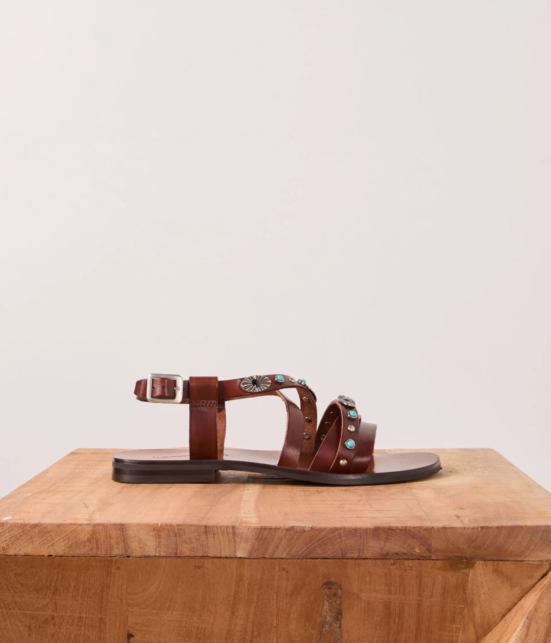 Let’s go, mon soleil ! Habillez vos pieds de bijoux avec les sandales Charlie en cuir marron. Racontez, avec passion, l’histoire des Navajos et leur artisanat à base de pierres turquoises. Et si on vous pose la question, répondez ‘yáʼátʼééh, yáʼátʼééh abíní’, ça veut dire bonjour.