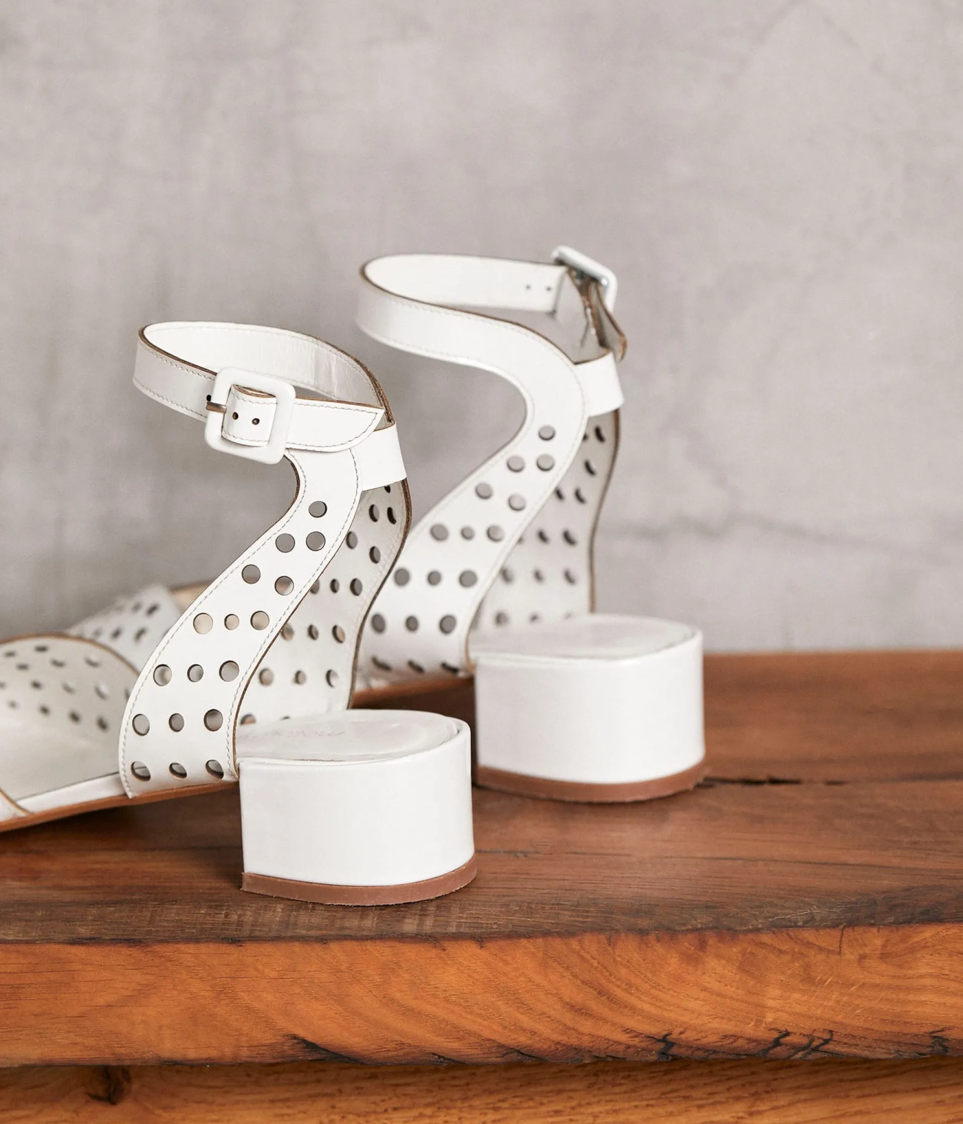 On connaissait la fringale triple C, chips, chocolat, charcut’. On connait moins la soif double S, sandale, soleil. Parfaitement identifiable à l’approche de l’été et du changement de saison, elle s’étanche à coup de cuir blanc et de perforations régulières, offrant à Ancome, une silhouette plus légère.