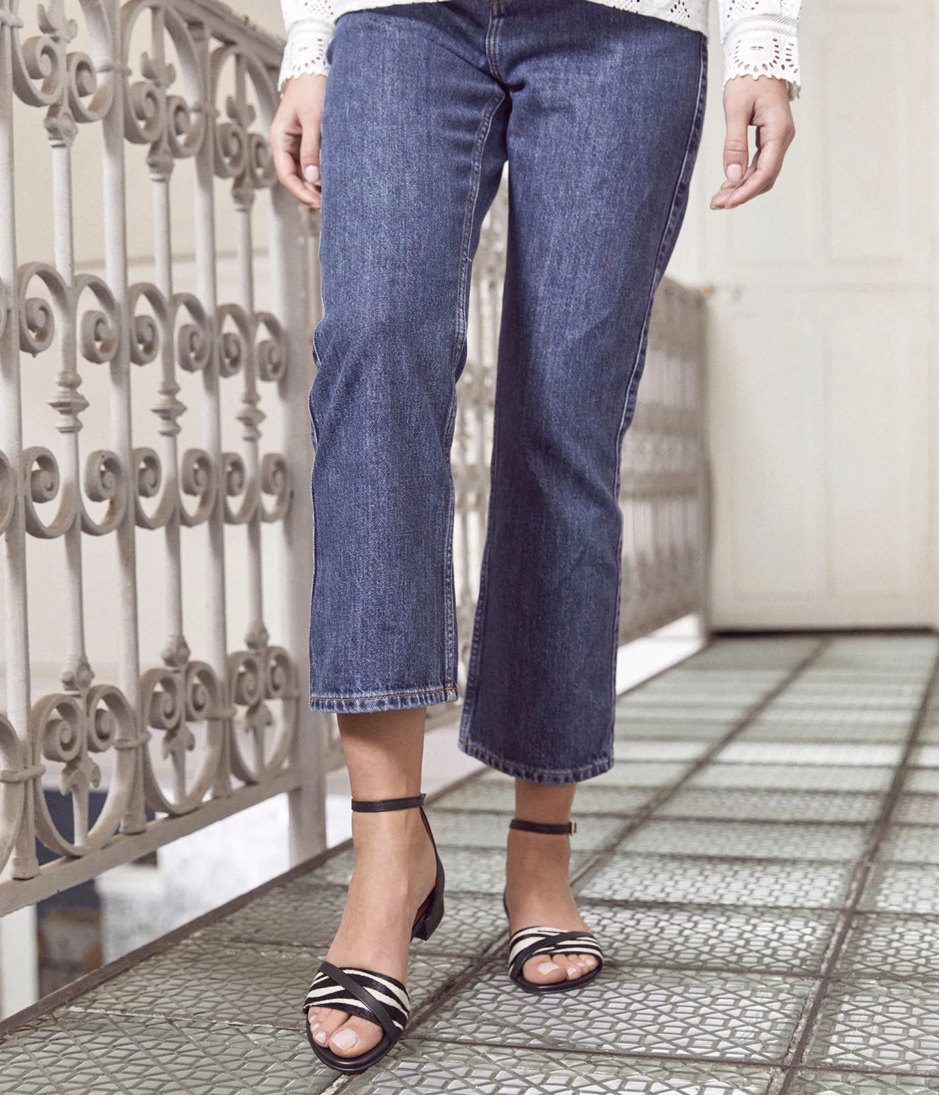 Vous voulez miser sur le bon poulain ? Faites tapis sur notre paire de sandales plates Ellyn en cuir lisse et cuir façon poulain à motif zèbre. On ne connait pas les côtes, mais on sait que, chaussée ainsi, vous l’aurez. La côte.