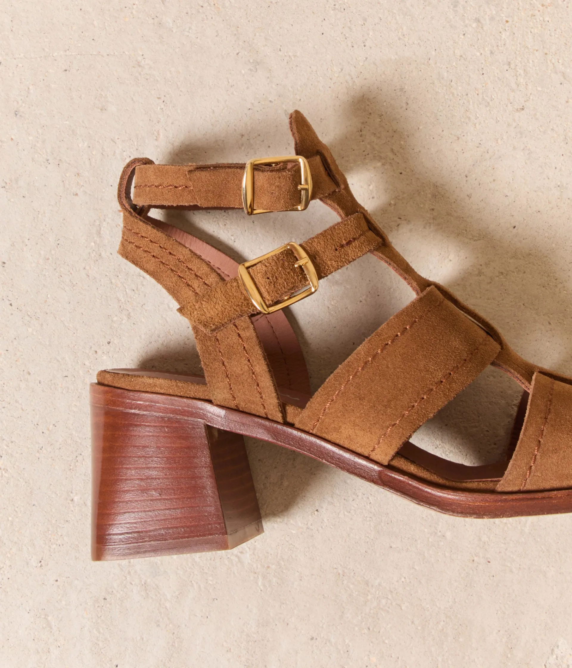 Une définition de la forme ? Être bien dans sa tête et à l’aise avec sa silhouette. Notre astuce-illusion pour l’allonger sans se torturer ? LA bonne paire de sandales à talon. Avec Faustine, c’est 6,5 cm de gagné, sans effort et tout confort ! Et quoi dire de plus concernant son cuir velours couleur tabac ? Il matche absolument avec tout, tout, tout !