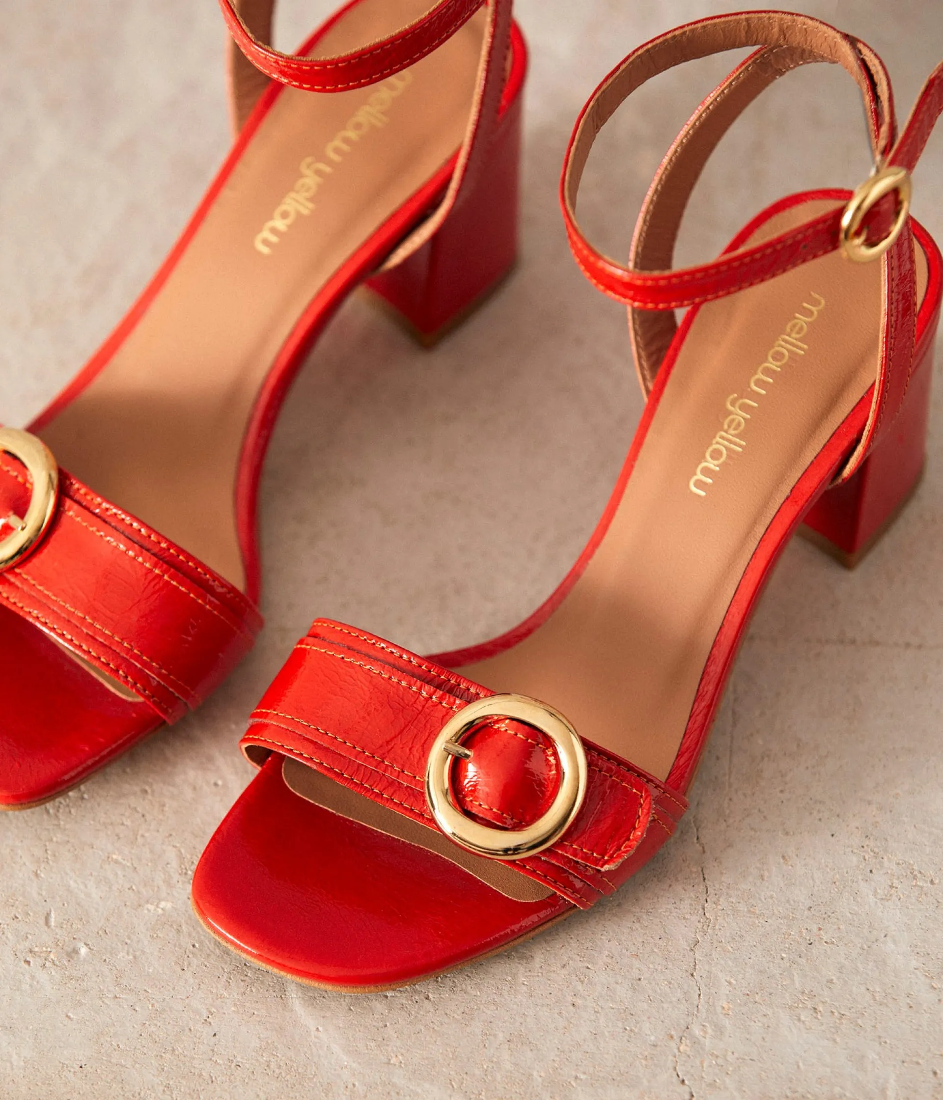 Les sandales Lise marquent le début de la saison d’été. Un peu plus de couleur, avec un orange pop et vitaminé. Un peu plus de légèreté, avec des fines brides à boucles en métal doré. Un peu de souplesse aussi. L’occasion de vérifier si vous êtes-vous capable de toucher vos orteils du bout des doigts. Chiche ?