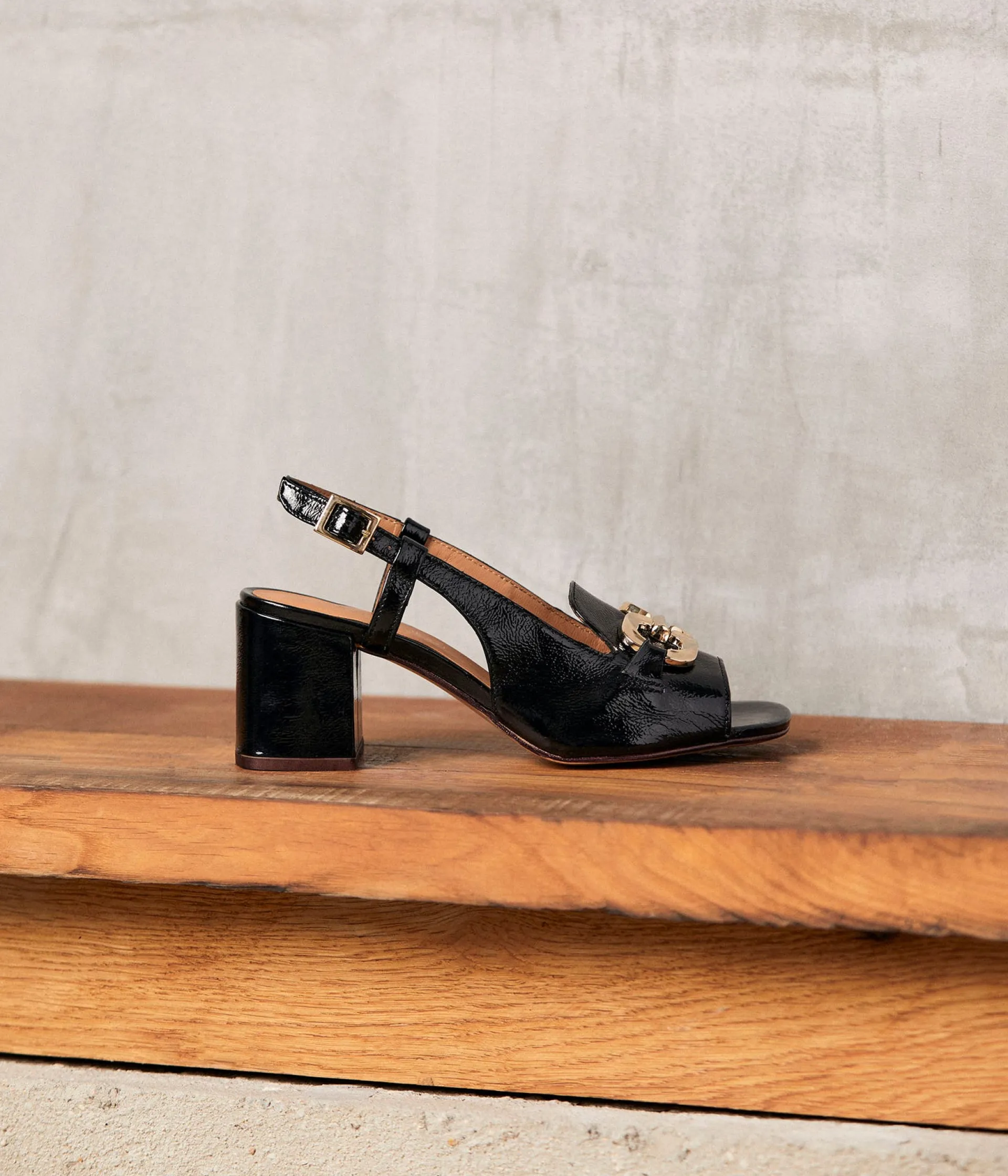 Complètement vernie ! C’est, sans aucun doute, le meilleur compliment qu’on peut vous faire, grâce aux slingbacks Devi. Cette expression de 1900 vient de l’argot et rappelle que le vernis permet de rendre une surface glissante. Aussi, quelqu’un de verni voit glisser sur lui tous les problèmes. Bye bye les soucis. Welcome la chance.