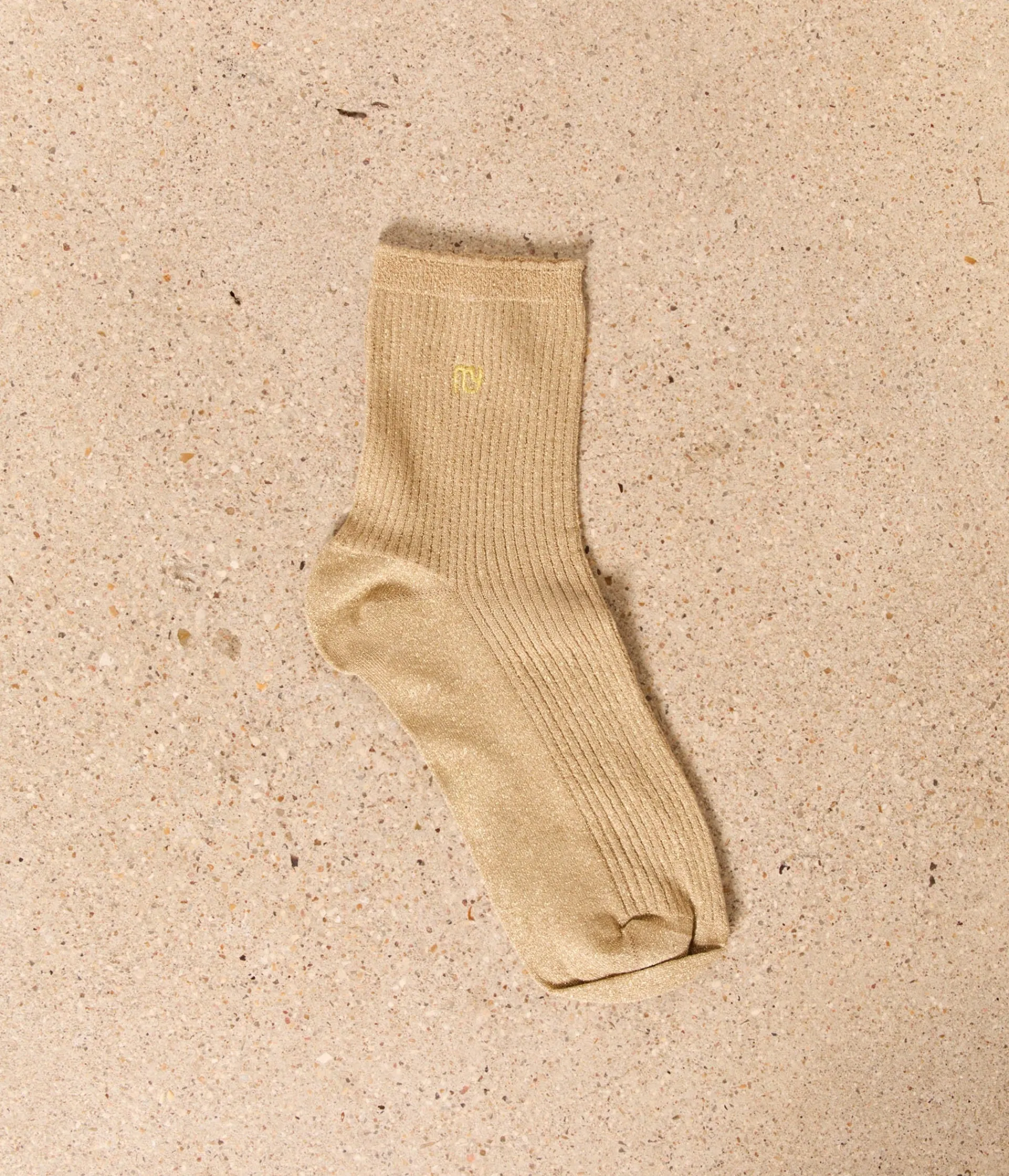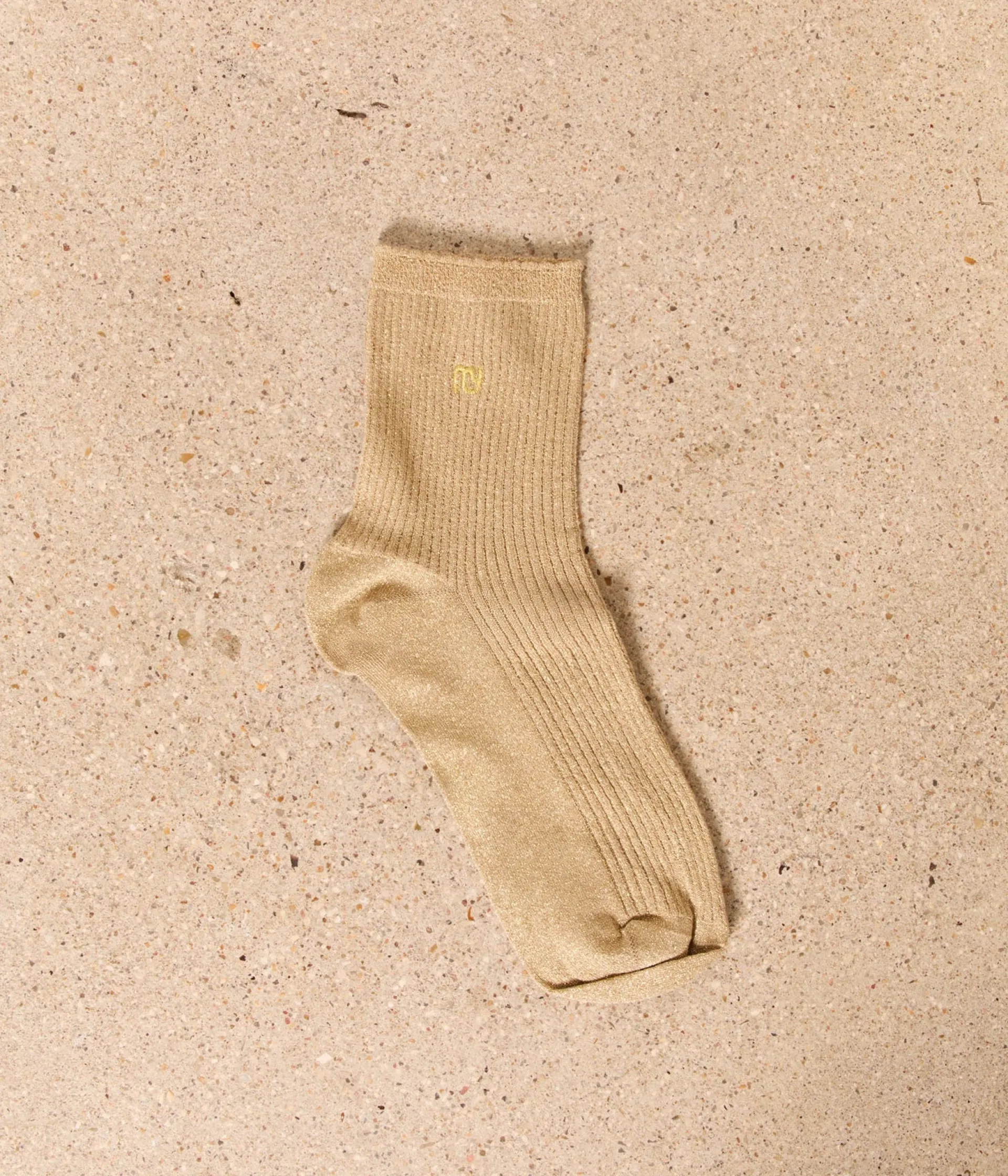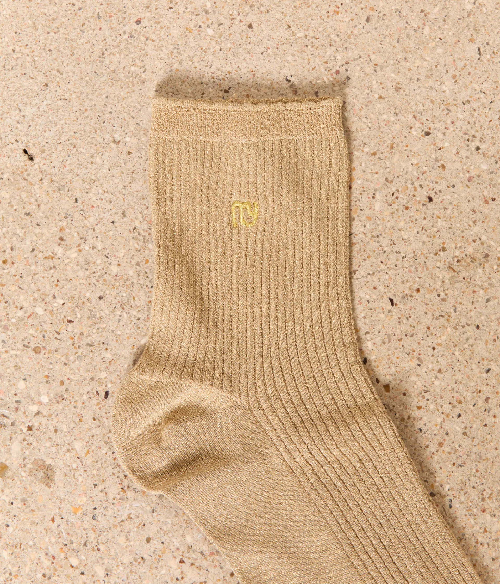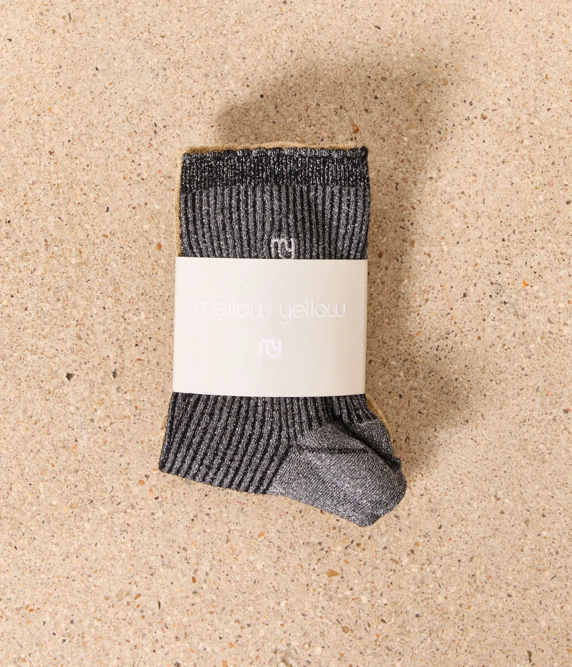 Non, vous ne voyez pas double. Ce sont bien deux paires de chaussettes que vous voyez là. L’une noire, l’autre dorée, les deux côtelées et pailletées. À collectionner et à porter sans modération.