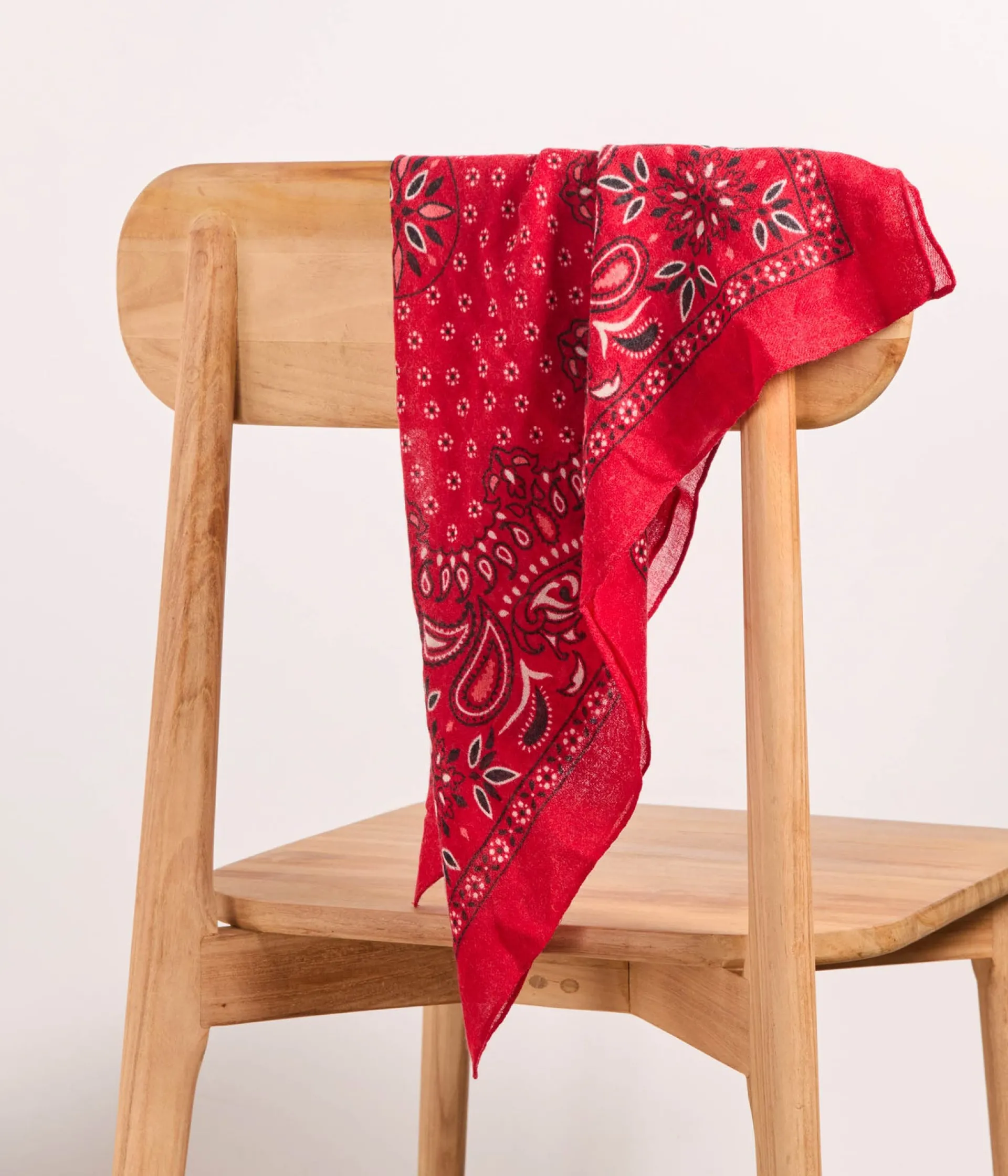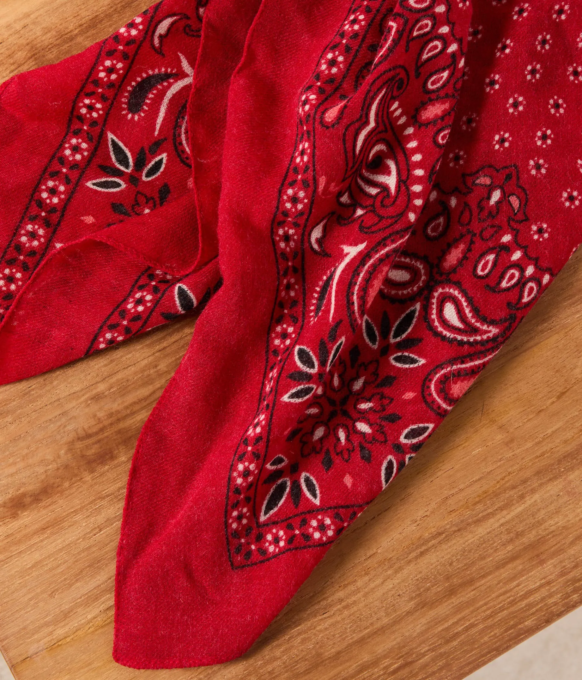 En cette rentrée, un fort vent cow-girl continue de souffler sur la mode. Symbole de cette esthétique à la fois rock et folk, le foulard d’inspiration bandana s’incruste partout. Version rouge en 100% laine, Zelia se plaira à votre cou comme à votre sac.