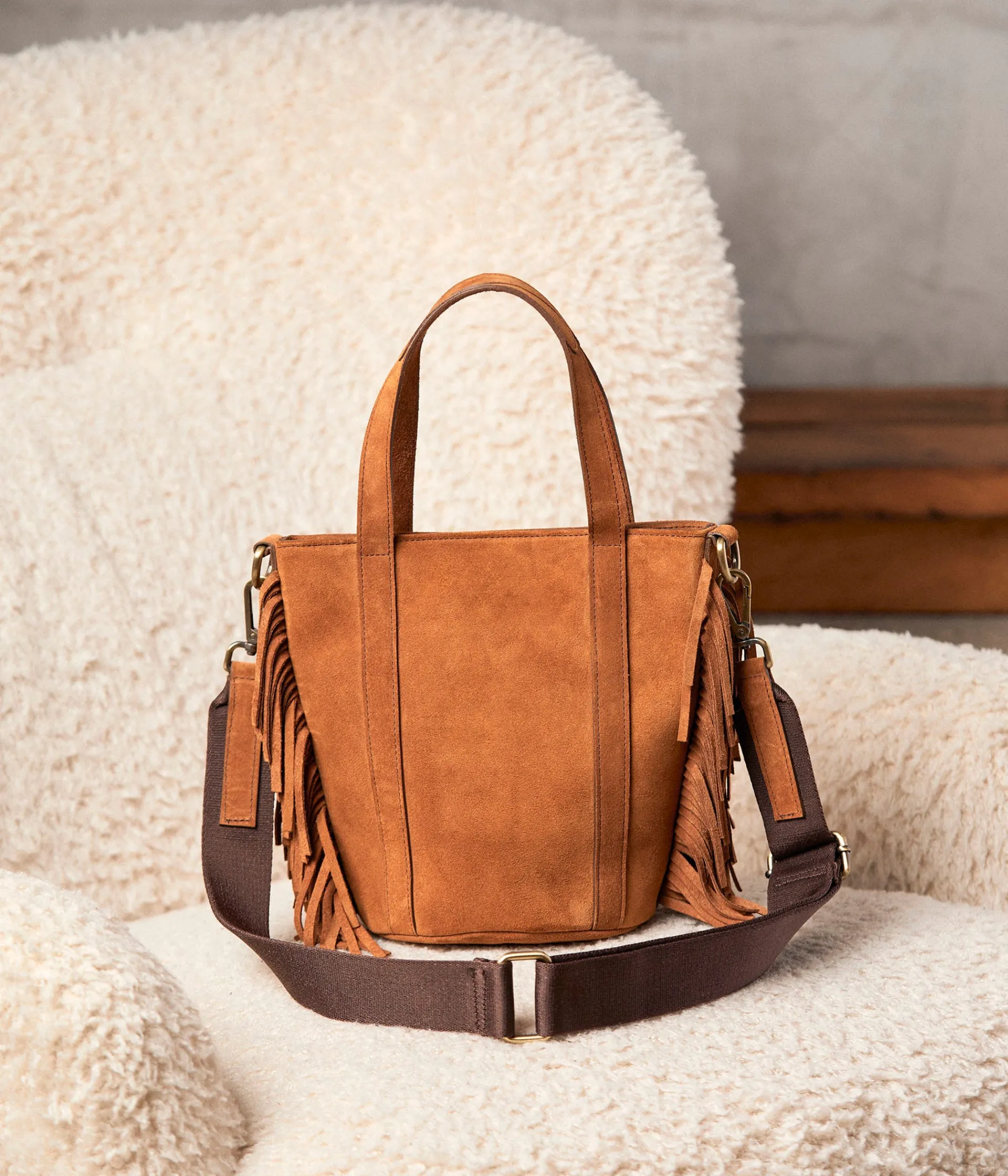 Le rêve ? Une chemise suédée, un short en lin à taille haute, des sandales en cuir velours et Tyler, un sublime sac frangé (qui porte le nom d’acteur américain, on l’avoue). On craque pour ses multiples portés, sur l’épaule ou croisé, pour savourer la prochaine escapade. Ready for a chic trip !