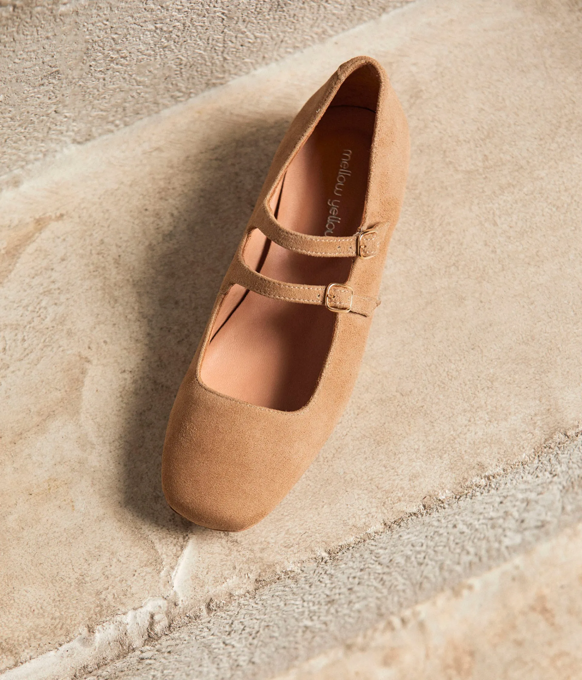 C’est quelqu’un qui vous a dit qu’on lui avait dit que les babies feraient un retour remarquable et remarqué cette saison. À notre humble avis, il n’a pas tout à fait tort. Et même carrément raison ! Essayez Aurella, sublimes dans un cuir velours camel, finalisées par deux fines brides sur le dessus du pied.