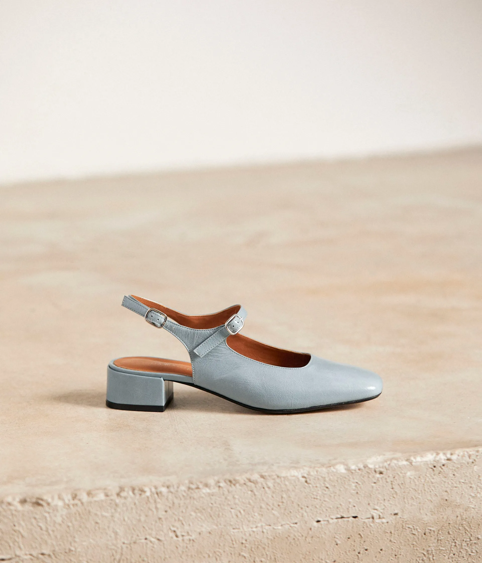 Se plier aux codes ? Très pour nous. Très peu pour vous aussi, on le sait. Franchissez de nouvelles barrières mode avec les slingbacks Clarissa. En cuir verni bleu ciel, elles jouent les romantiques.