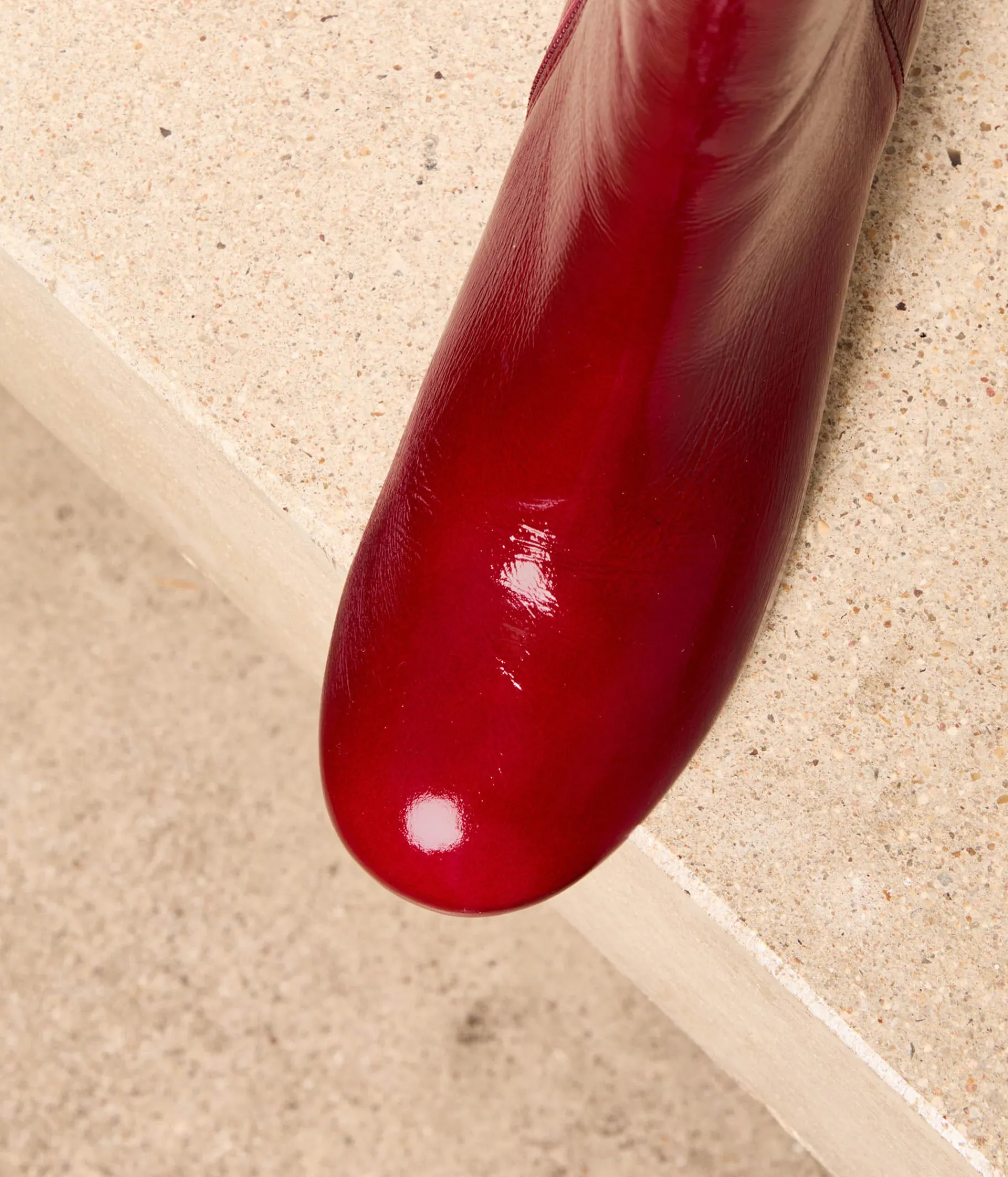 « Je trouve ça élégant la frivolité. Un endroit où se réfugier quand ça va mal ». Si vous partagez l’avis de Françoise Sagan, les boots Jason vont vous ravir ! Cuir rouge, finition vernie, look rétro : faites confiance à leur confort pour votre réconfort.