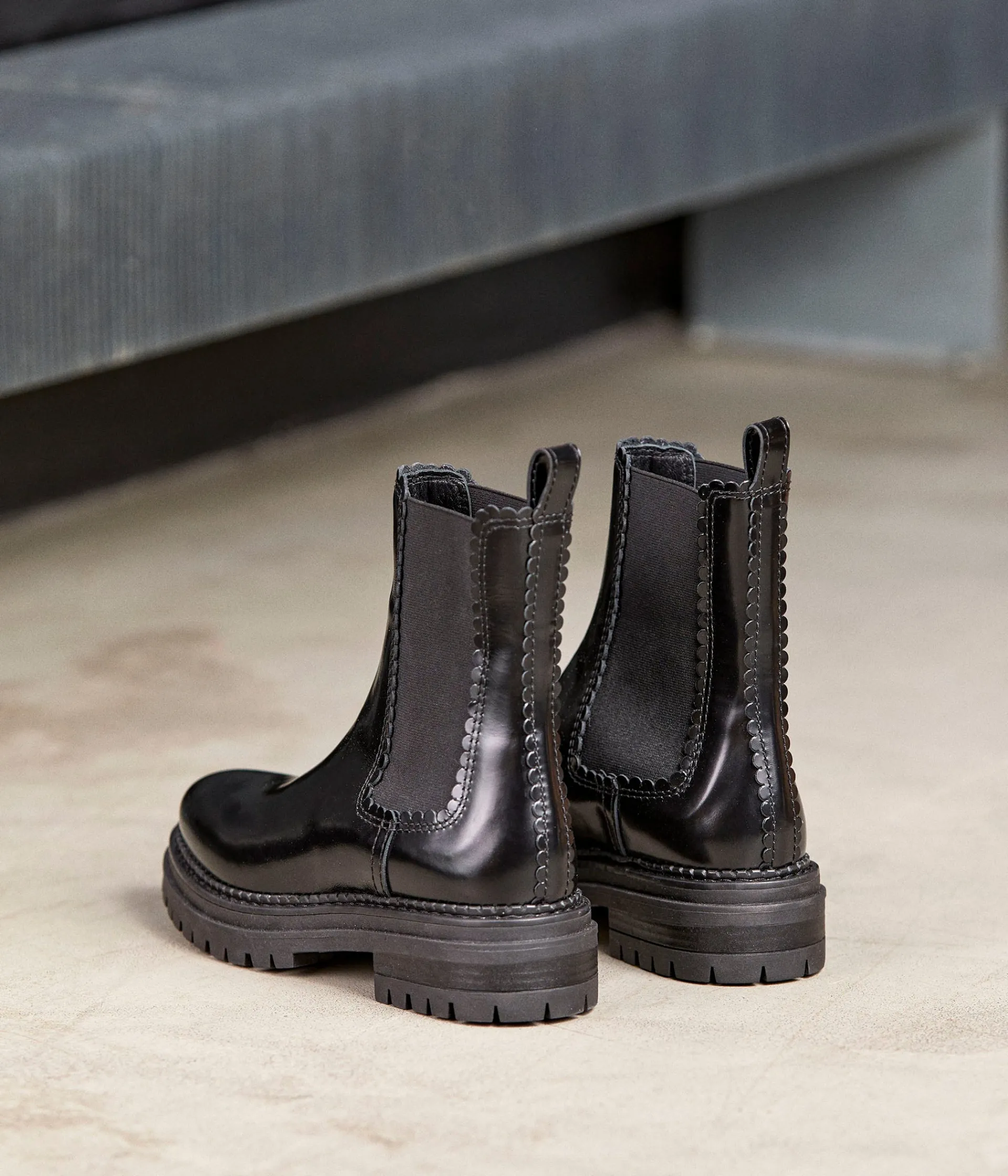 Ce week-end, vous n’êtes plus dispo. Vous avez rencard avec les boots Harmonie. Cuir noir, finition vernie, élastiques latéraux avec bordure façon croquet : elles méritent toute votre attention. Le cœur qui palpite, les pupilles qui se dilatent, les lèvres qui dessinent un sourire. La rencontre de votre vie.
