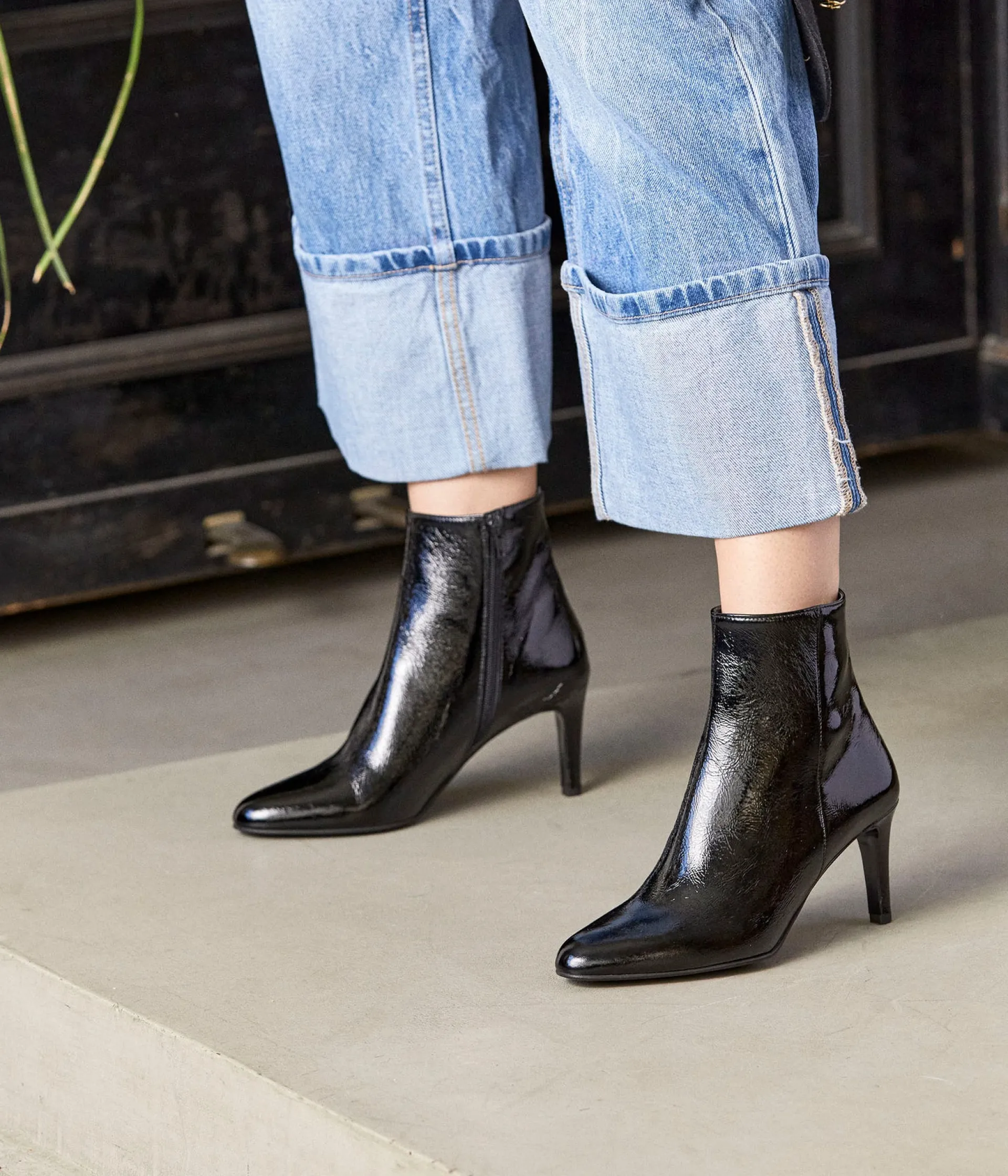 In Poeme we trust ! Ça sonne comme un engagement politique voire féministe. Ça résonne surtout comme une nouvelle passion. Singularité, finesse, chic, ces boots en cuir verni noir, un brin rétro il faut l’avouer, n’ont pas fini de vous faire marcher voire courir.