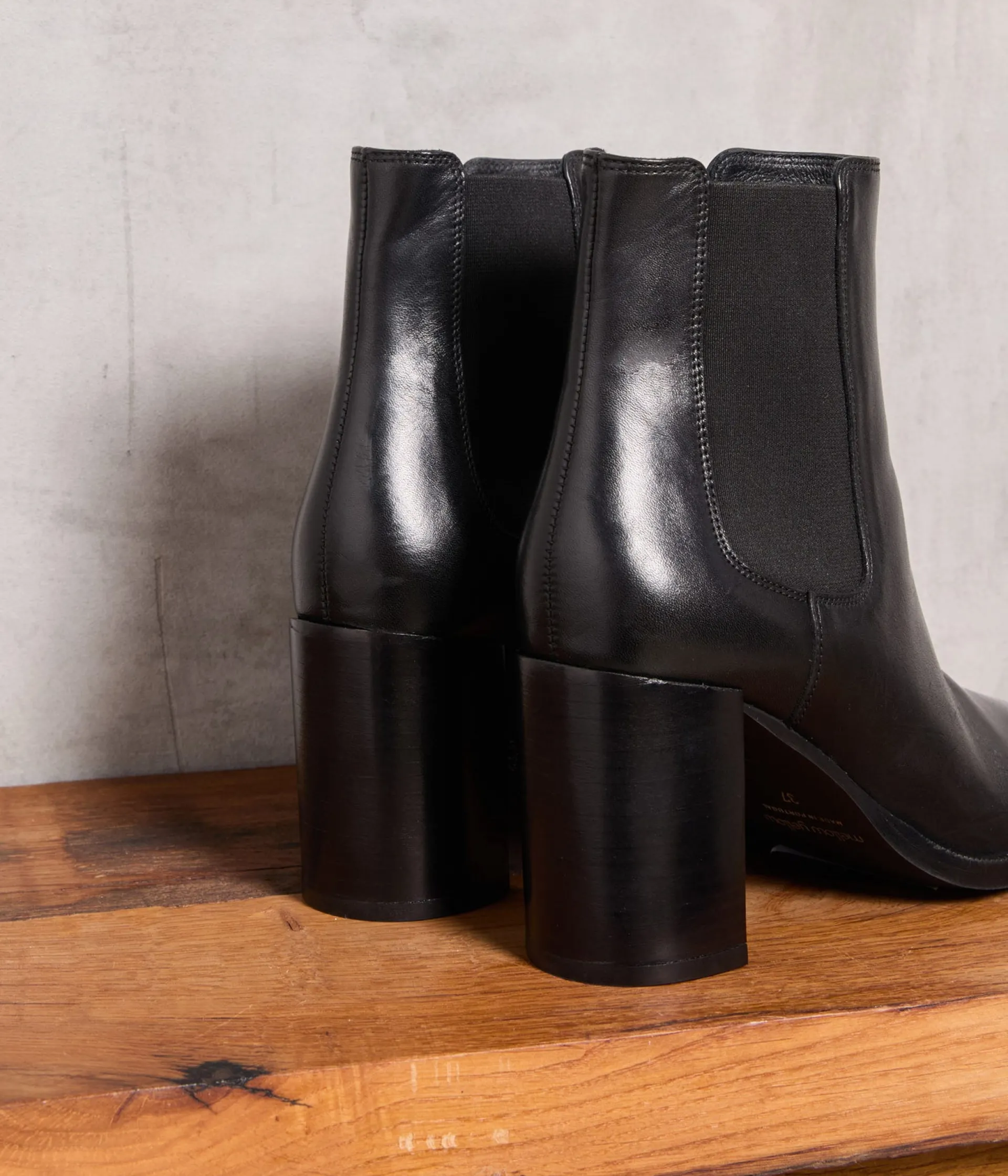 Les Chelsea boots sont-elles glam’ ? Tantôt conformistes, tantôt éminemment désirables, elles confirment leur statut mode, saison après saison. Découvrez Rosie, en cuir noir, sublimées par 12 cm de talon. Comme une nouvelle définition de la perfection.