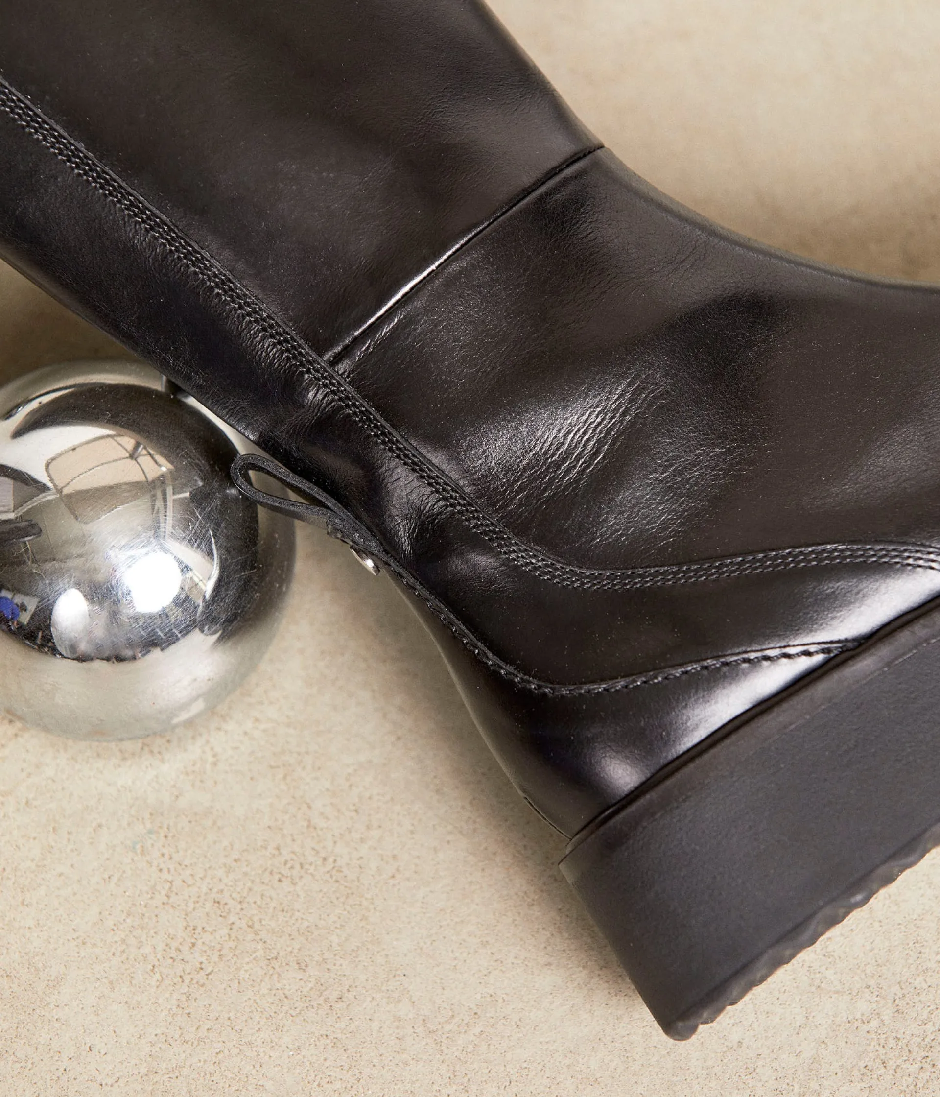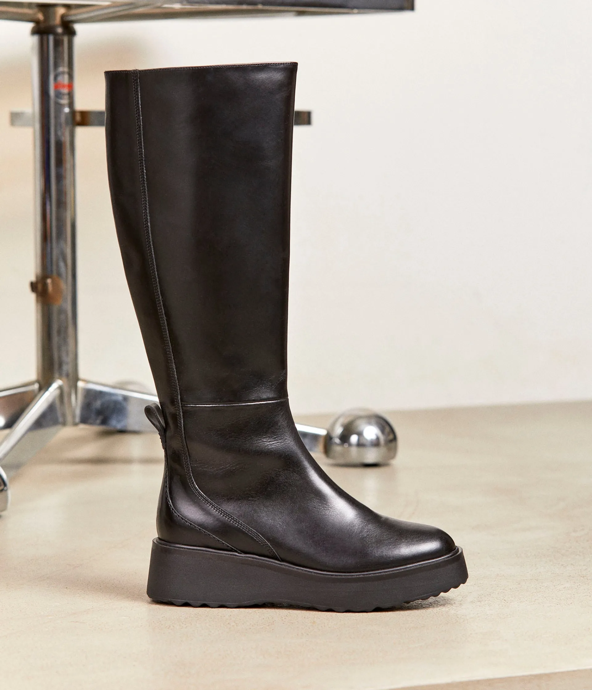Let the winter begin ! Celles à ne pas rater s’appellent Quiterie. Un prénom original pour une paire de bottes phénoménale. En cuir noir, elles imposent leur style par une semelle compensée de 4,5 cm, qui allonge la silhouette (mais pas les cils, dommage.) Bref, plus qu’une passion, une révélation.