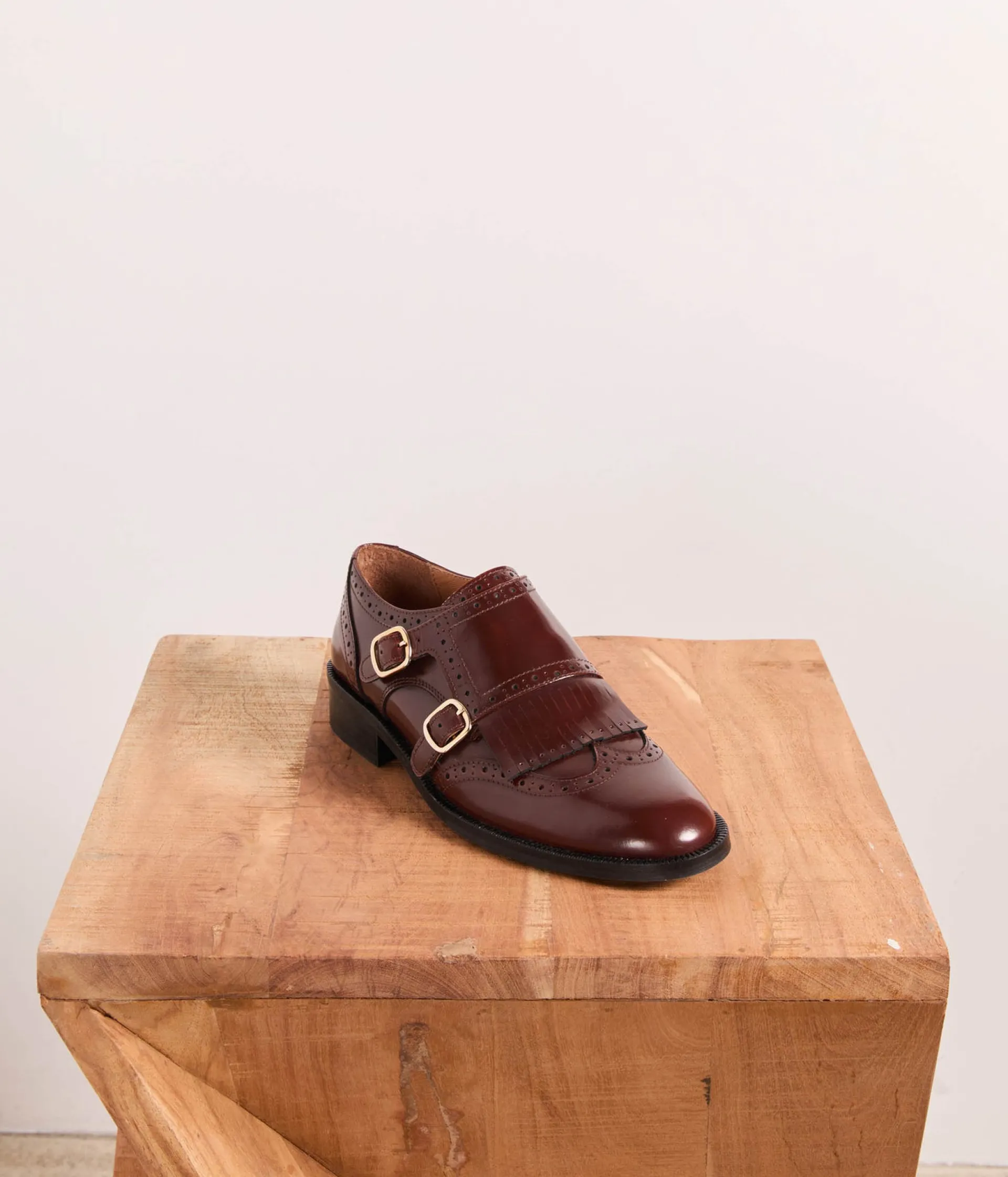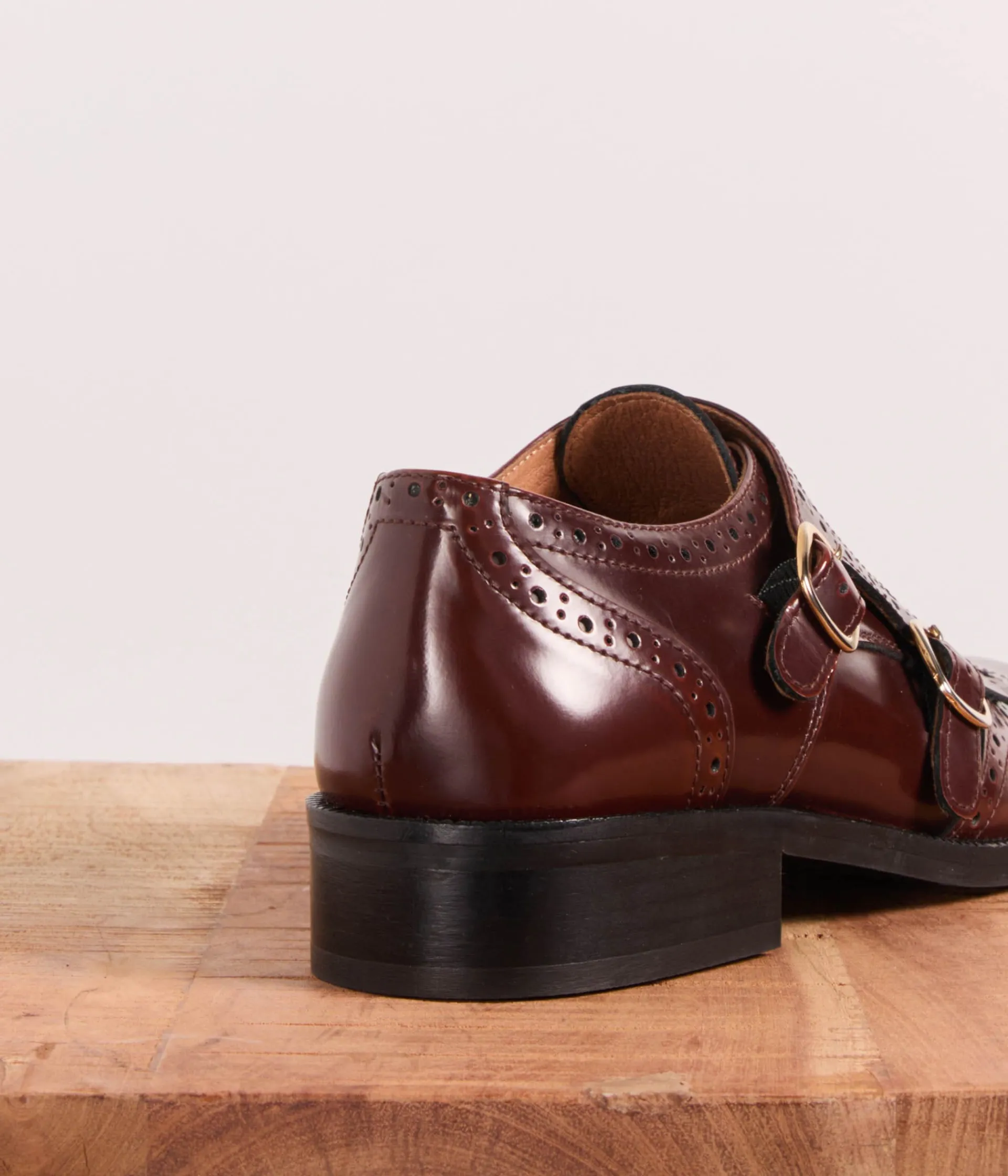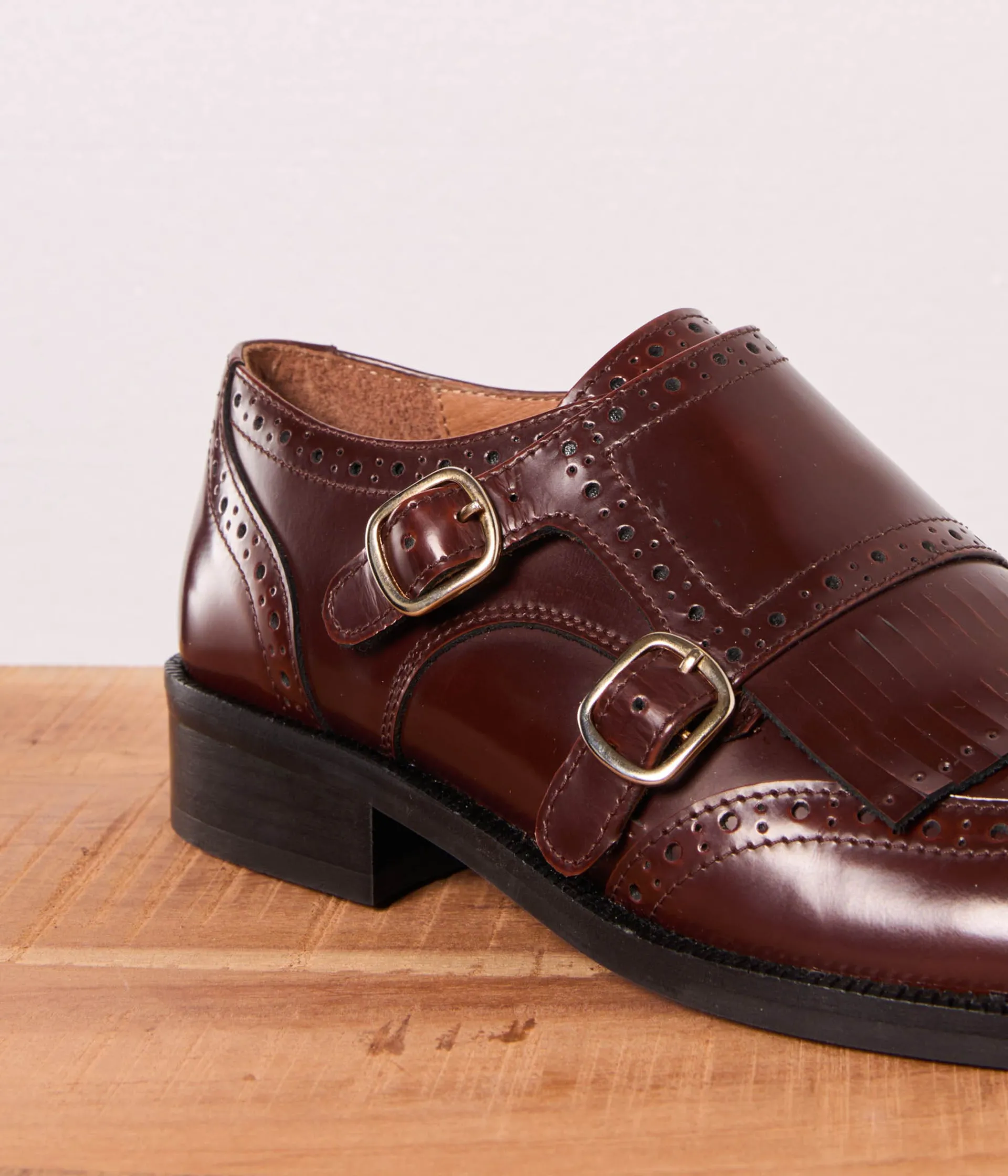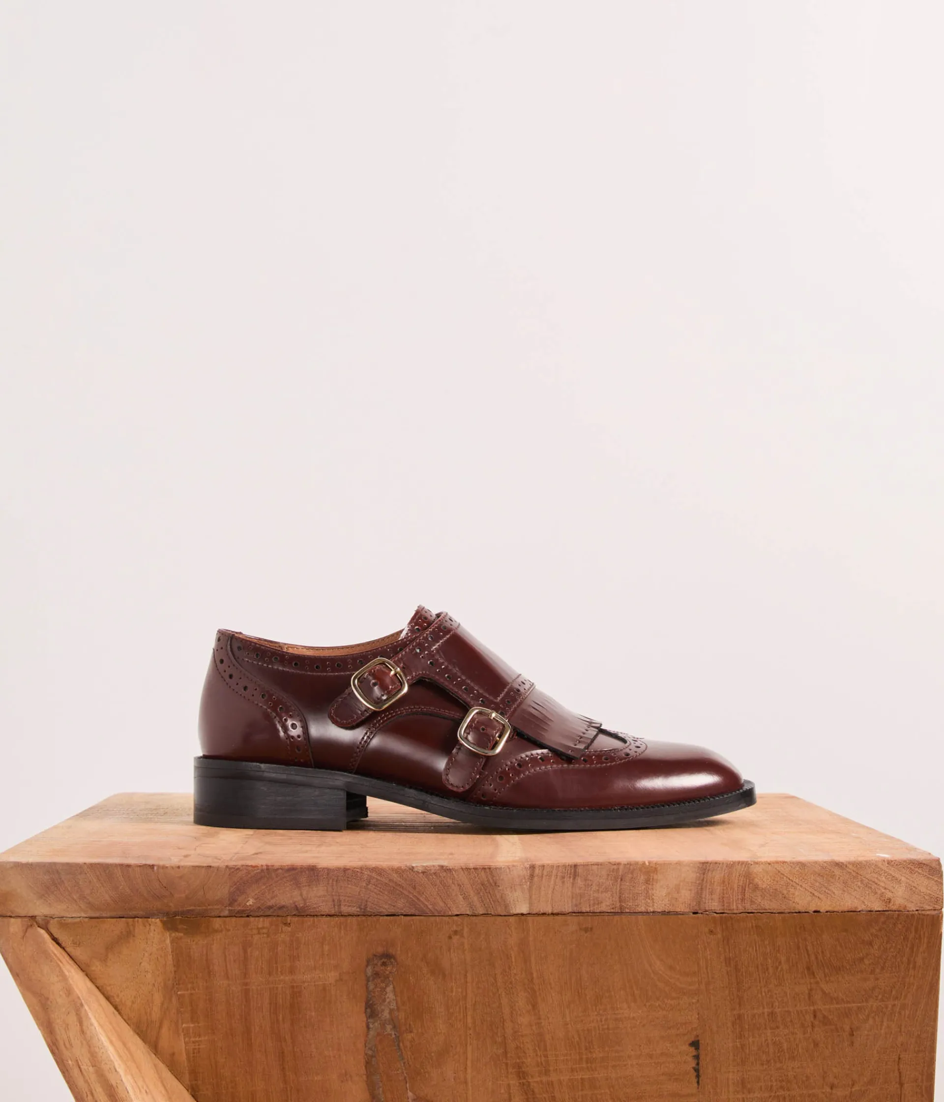 On n’aurait peut-être pas misé un penny sur ce retour en grâce fashion. Et pourtant ! L’esprit british semble inspirer plus d’un look ces temps-ci. Démonstration avec les derbies Chandler en cuir marron, baptisés monk en raison de ses deux boucles sur le côté. Le tailleur tartan is for you !
