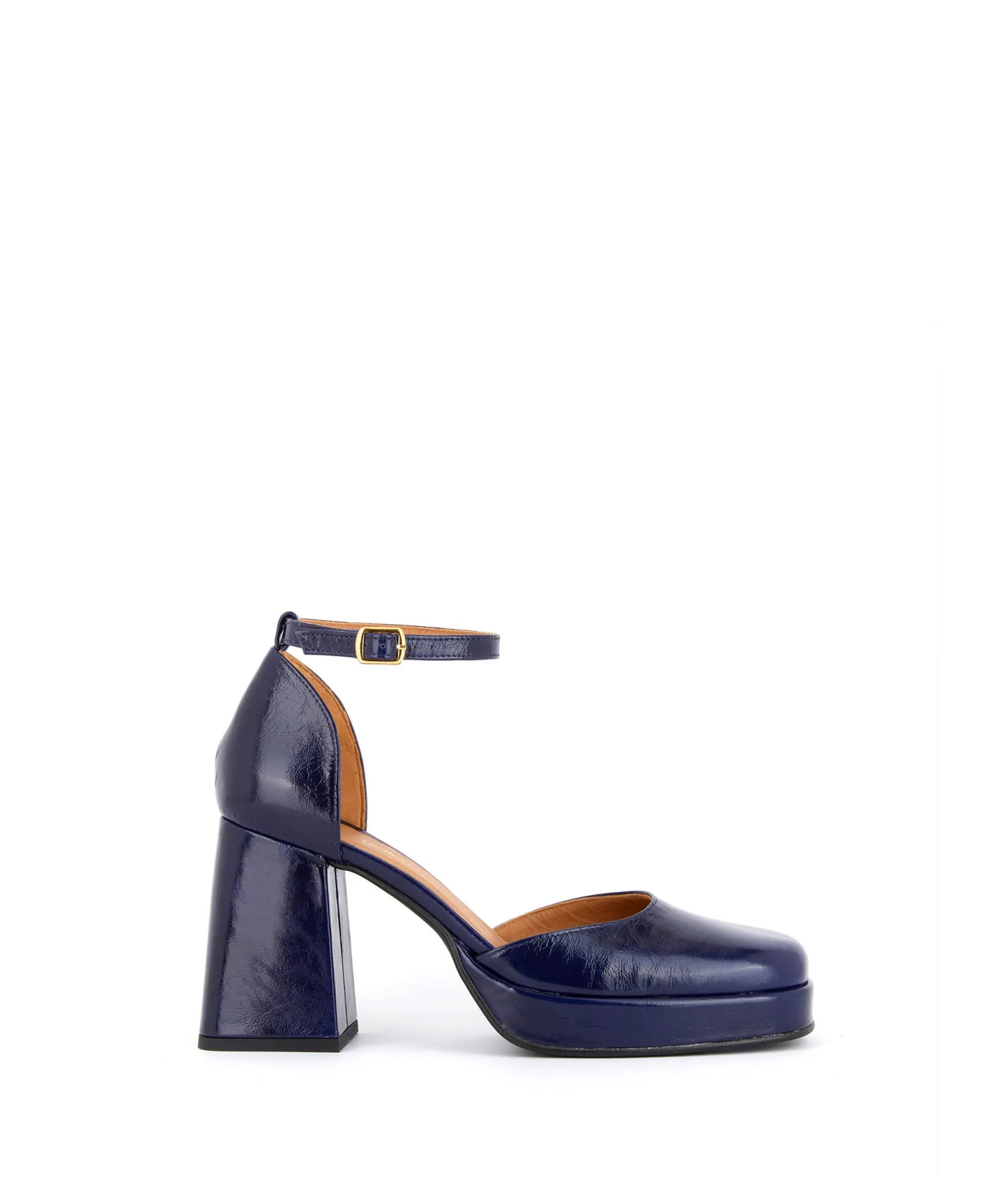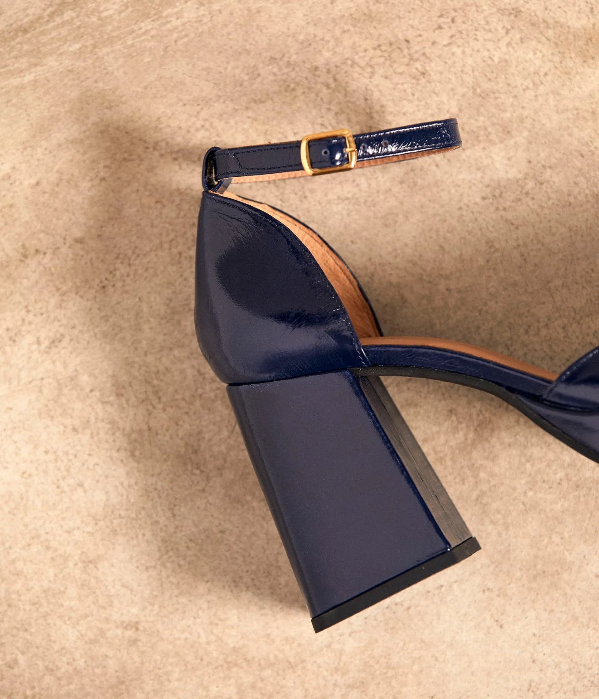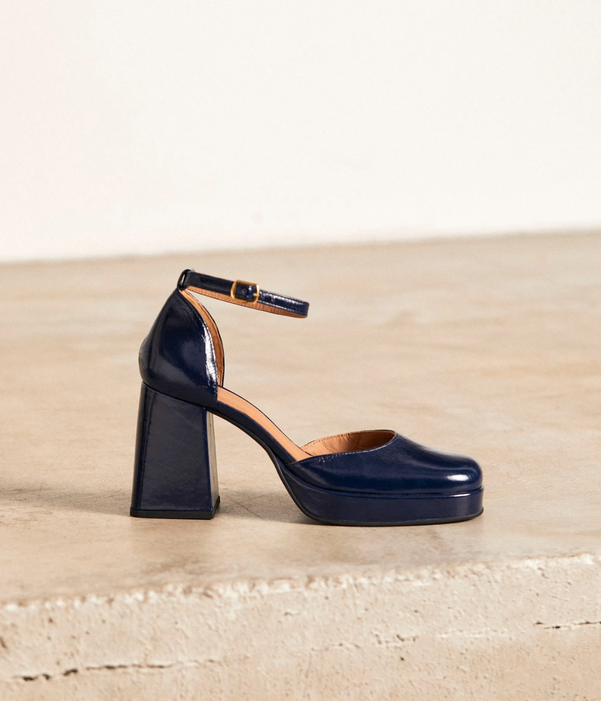 Chez Mellow Yellow, on aime le rétro, et le moins qu’on puisse dire, c’est que vous aussi ! Essayez Aurore, notre modèle iconique complètement waouh ! Coloris bleu marine intemporel, cuir froissé à finition vernie, talon flare de 8,5 cm et plateforme de 2 cm. On sait que vous savez que nous savons que vous allez craquer.