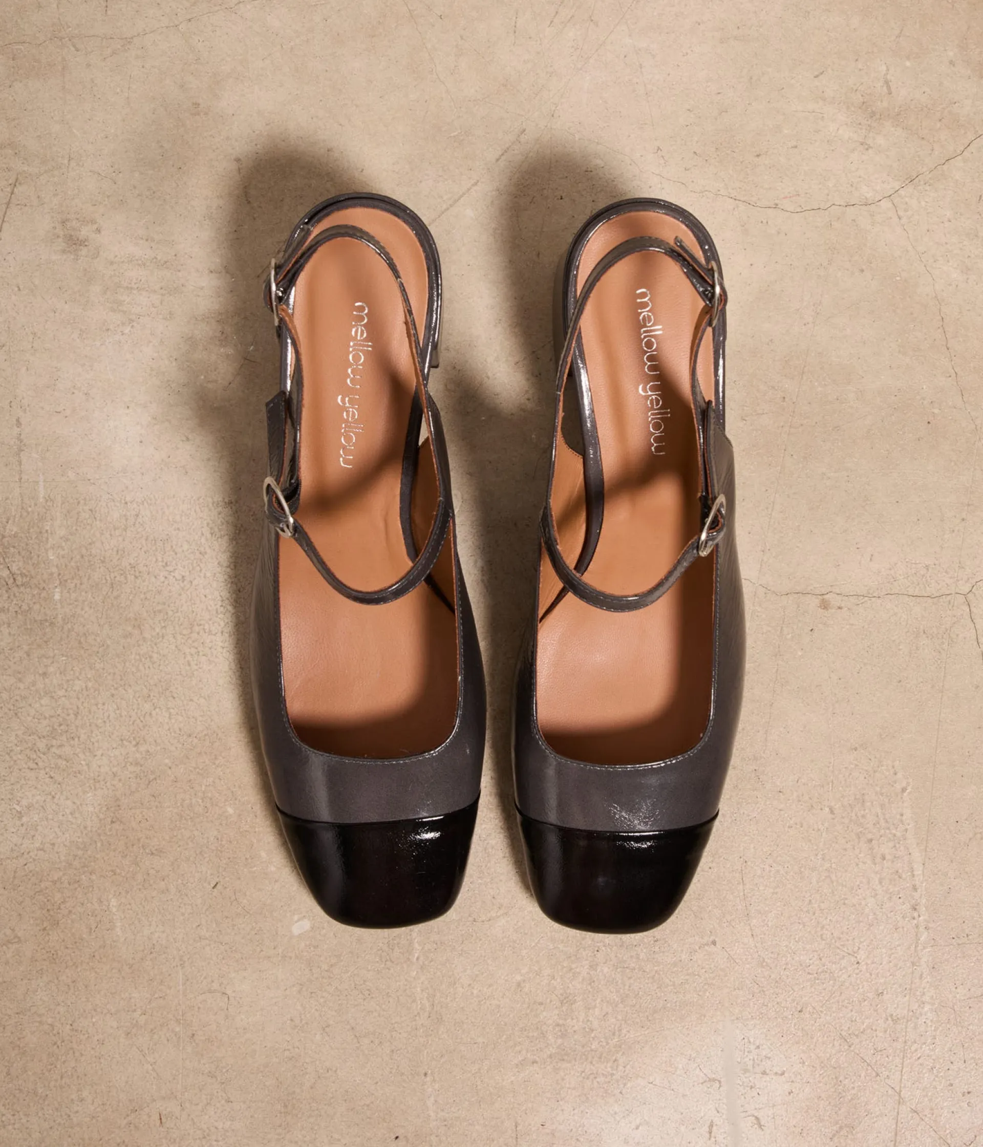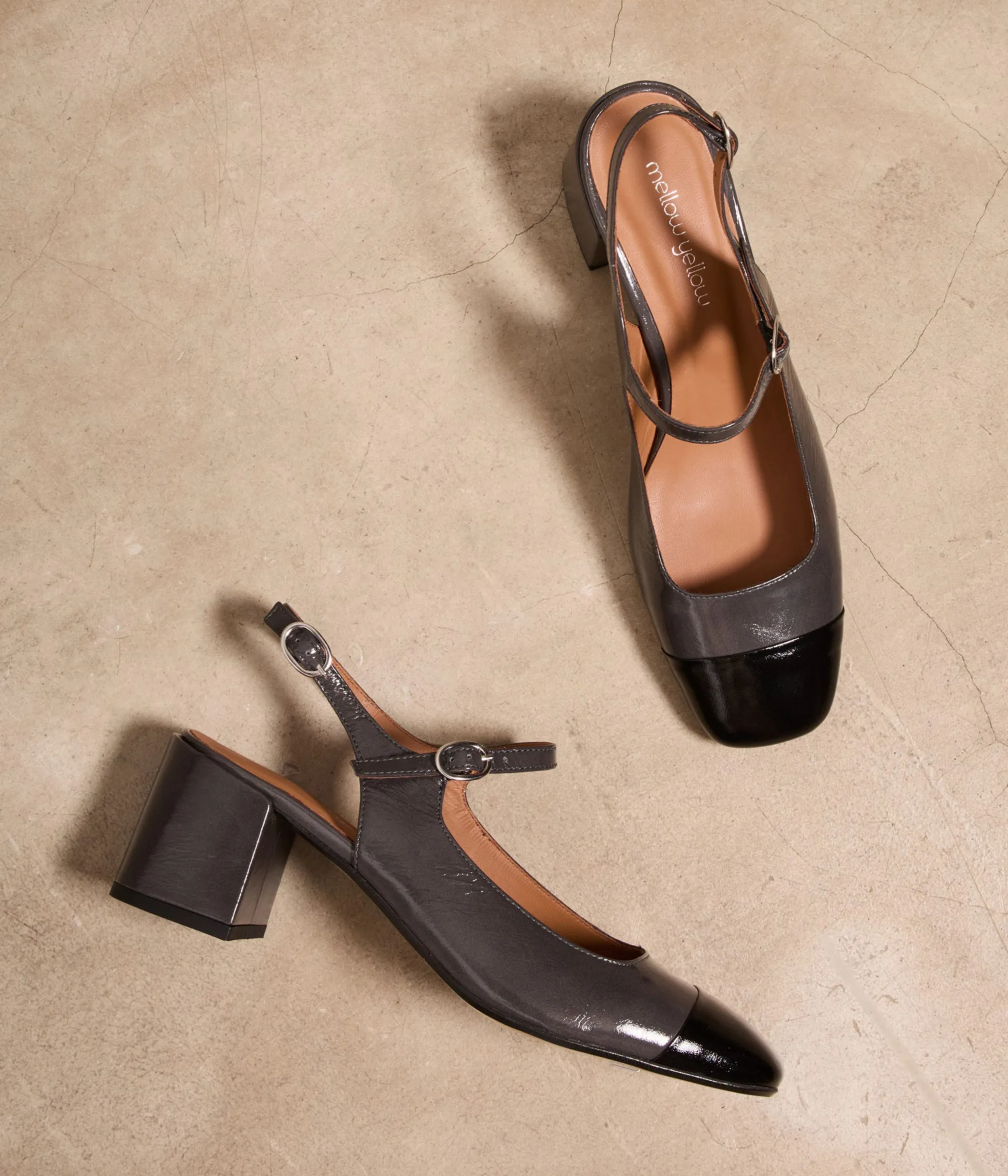 Les slingbacks sont si iconiques qu’elles pourraient faire l’objet d’un musée, d’une fête dans le calendrier, ou d’une rue à leur nom (vous en dîtes quoi ?). Classiques avec une robe-chemise, elles conservent un air « Lady » avec un top cropped et un jean mom. Essayez Diana, en cuir bicolore gris et noir et finition vernie.