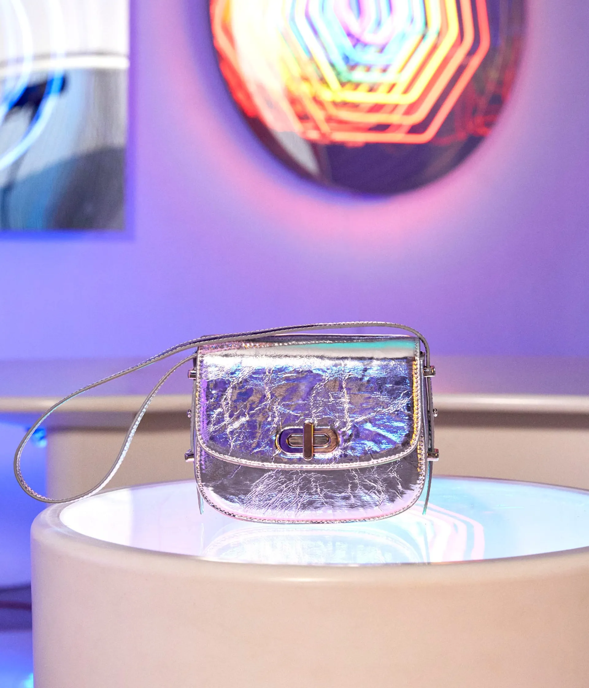 L’unique objectif du bel Edgar argenté ? Faire briller les jours sans. Sans soleil, sans moral, sans supplément salade -rayer la mention inutile-. Il remplit sa mission haut la main, sur l’épaule ou en cross body.