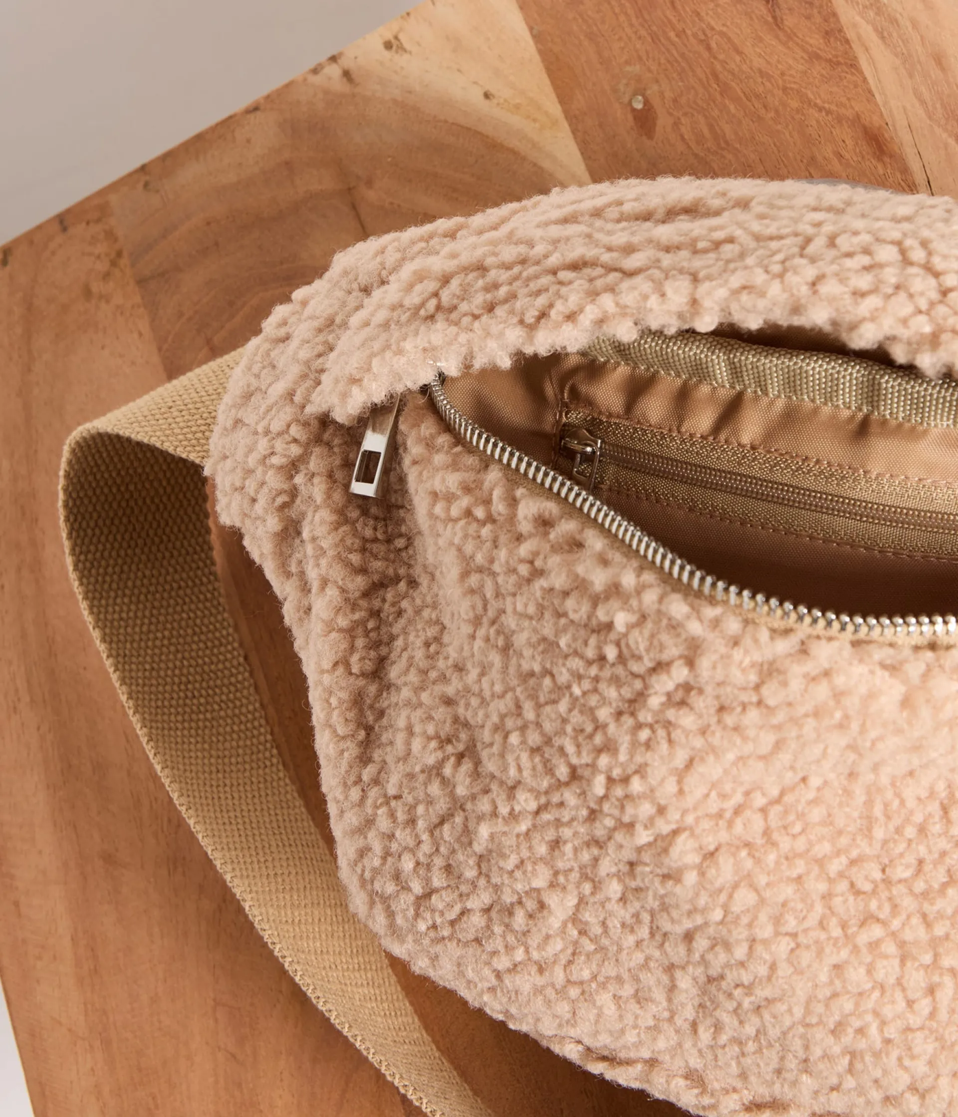 Coup de jeune sur les accessoires, avec le retour du sac banane. Revisité en tissu sherpa façon bouclette, Miko joue …